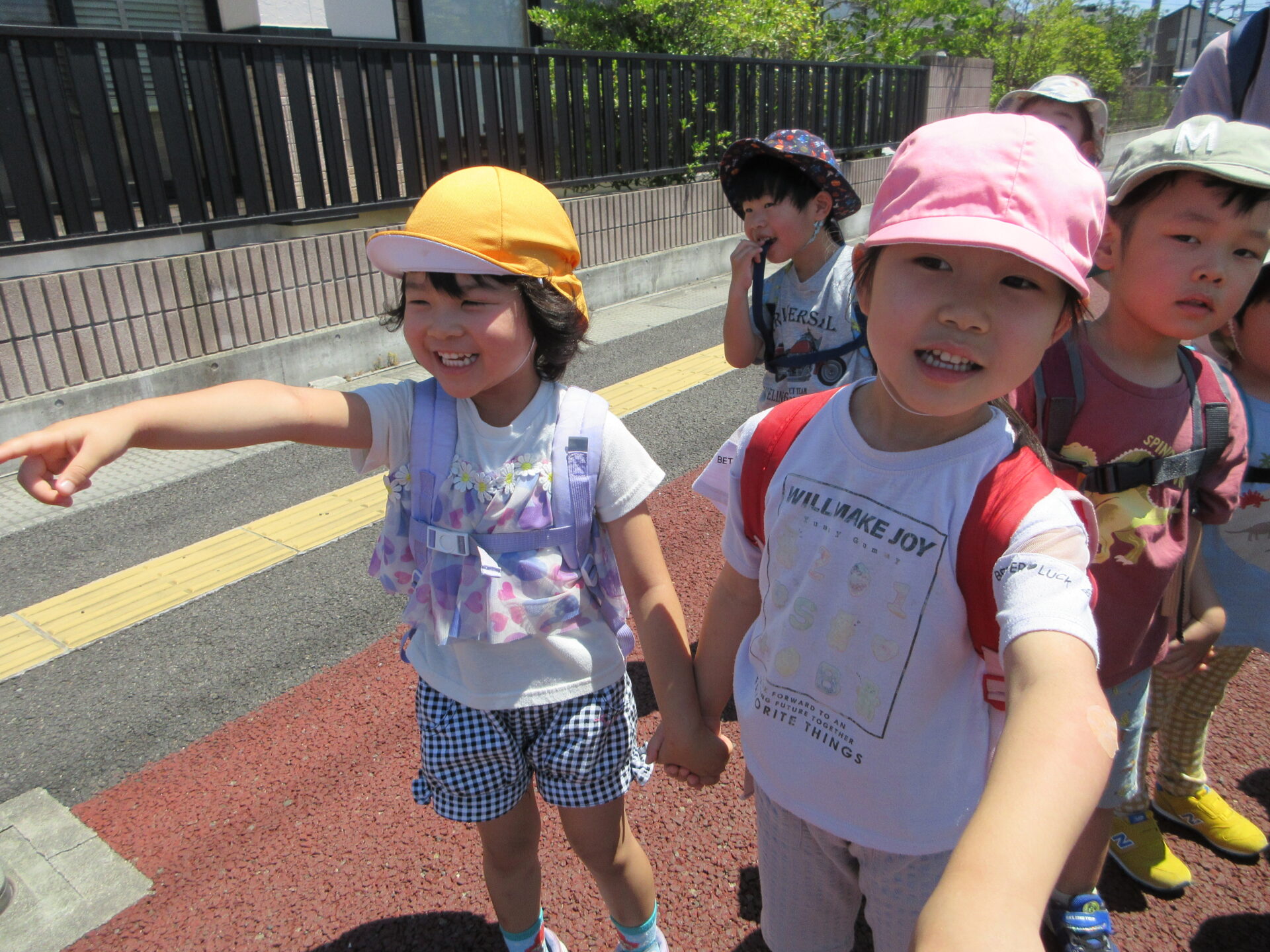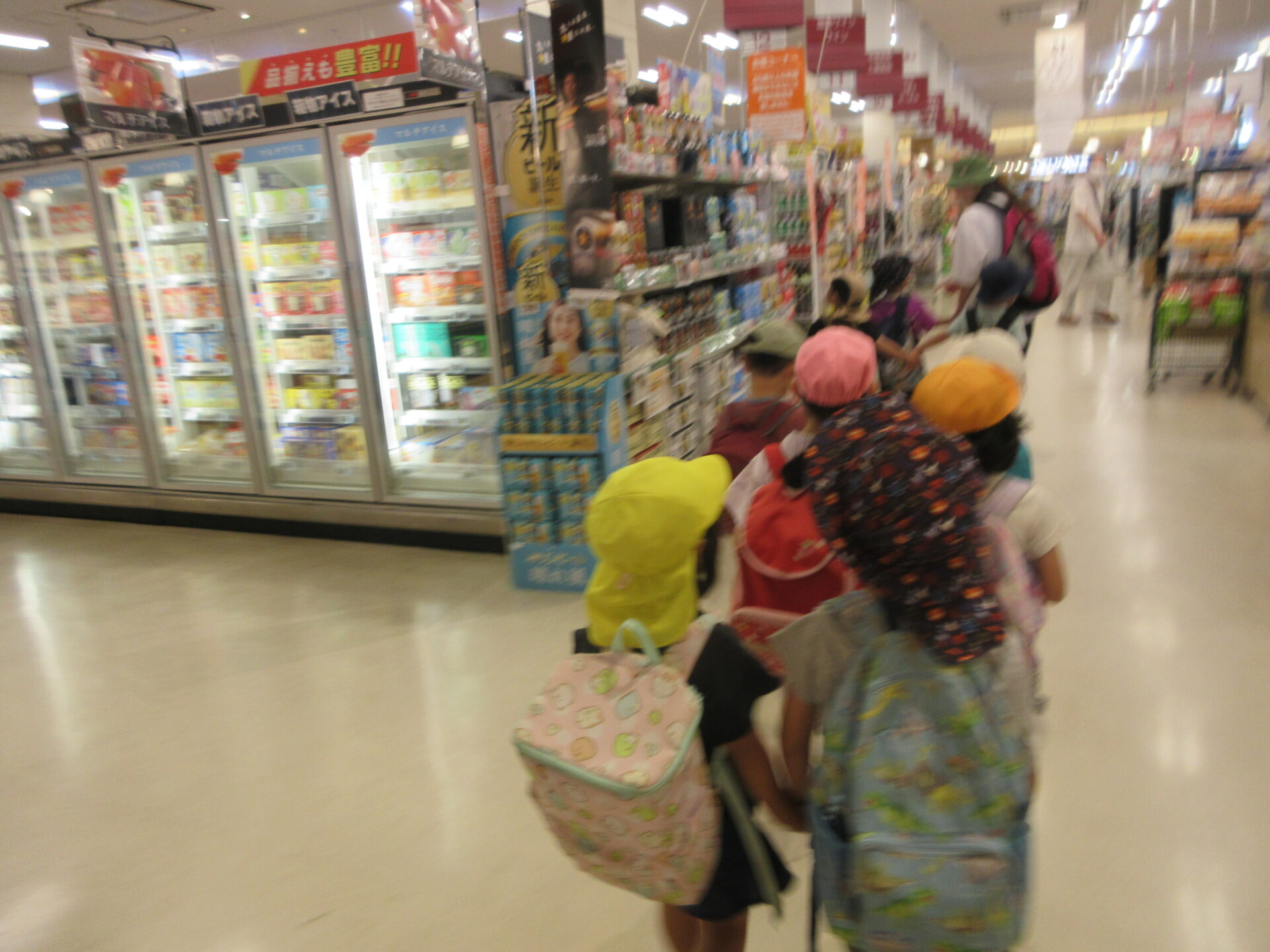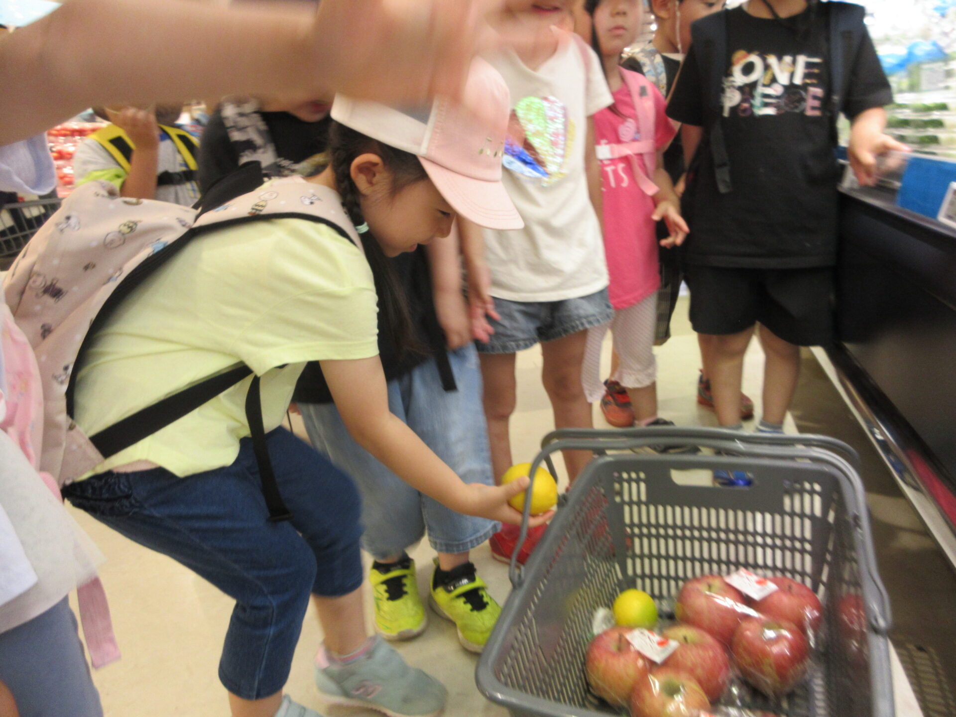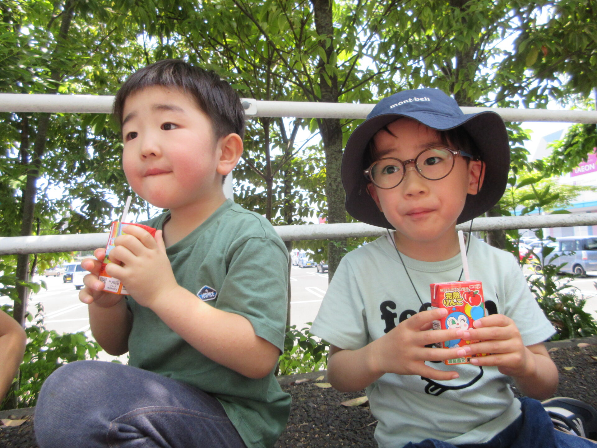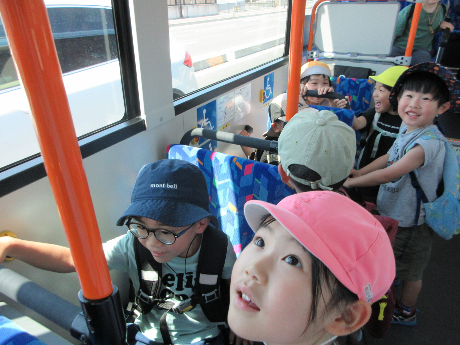 ジュース作りの材料を相談した、そら組(4歳児)のこどもたちは「なとりん号」に乗って、イオンモール名取に行ってきました。保育園前を通る「なとりん号」は、こどもたちにとって親しみのあるバスです。