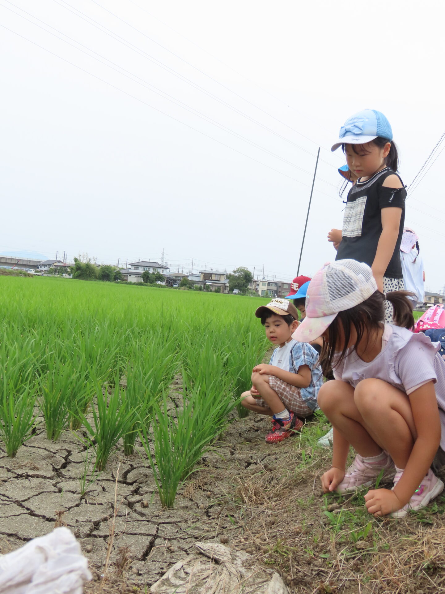 5月に5歳児のこどもたちが植えた苗の様子を観察に田んぼに行ってきました。