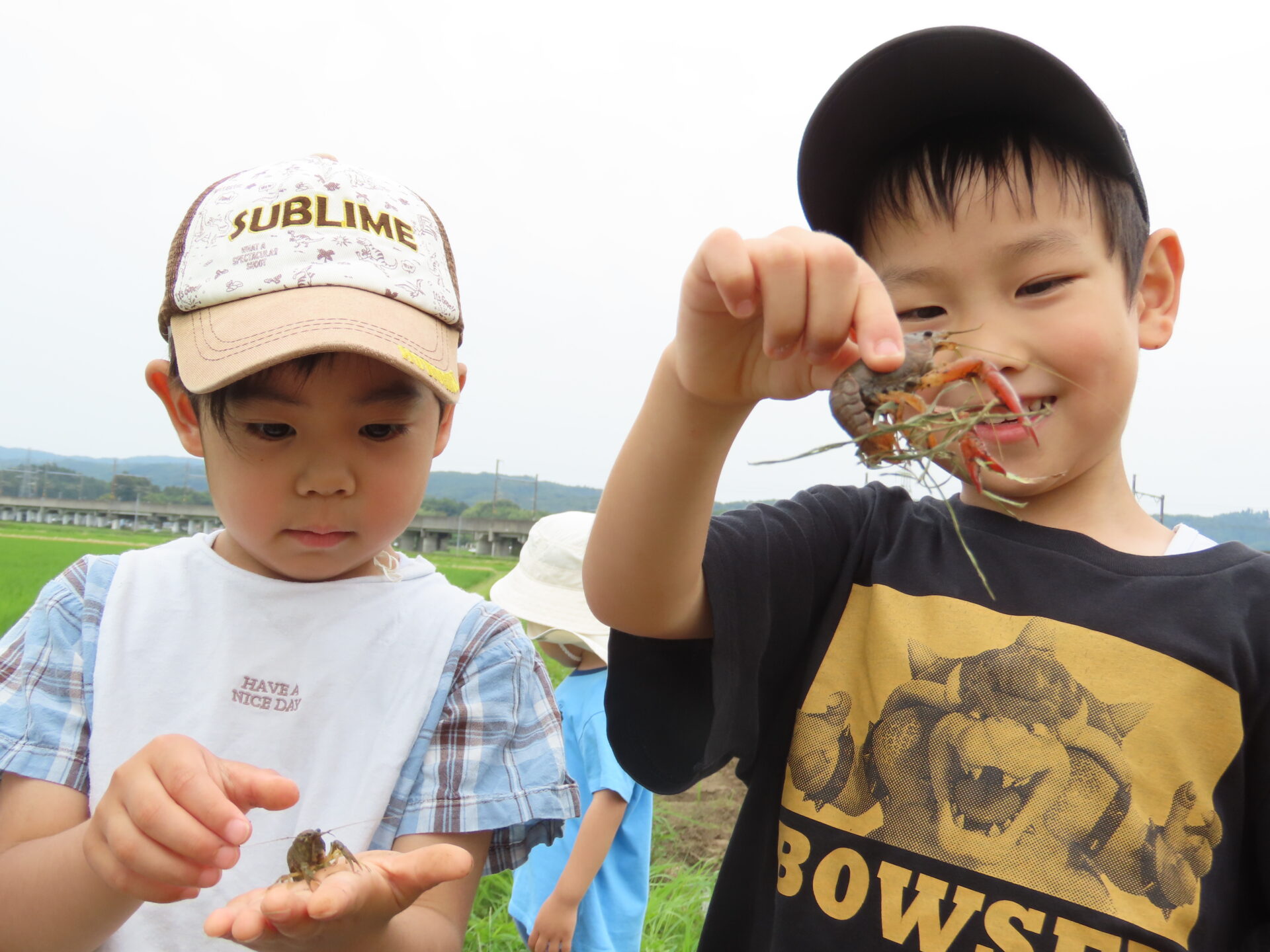 田んぼ観察の後は、もうひとつのお楽しみである生き物探索!