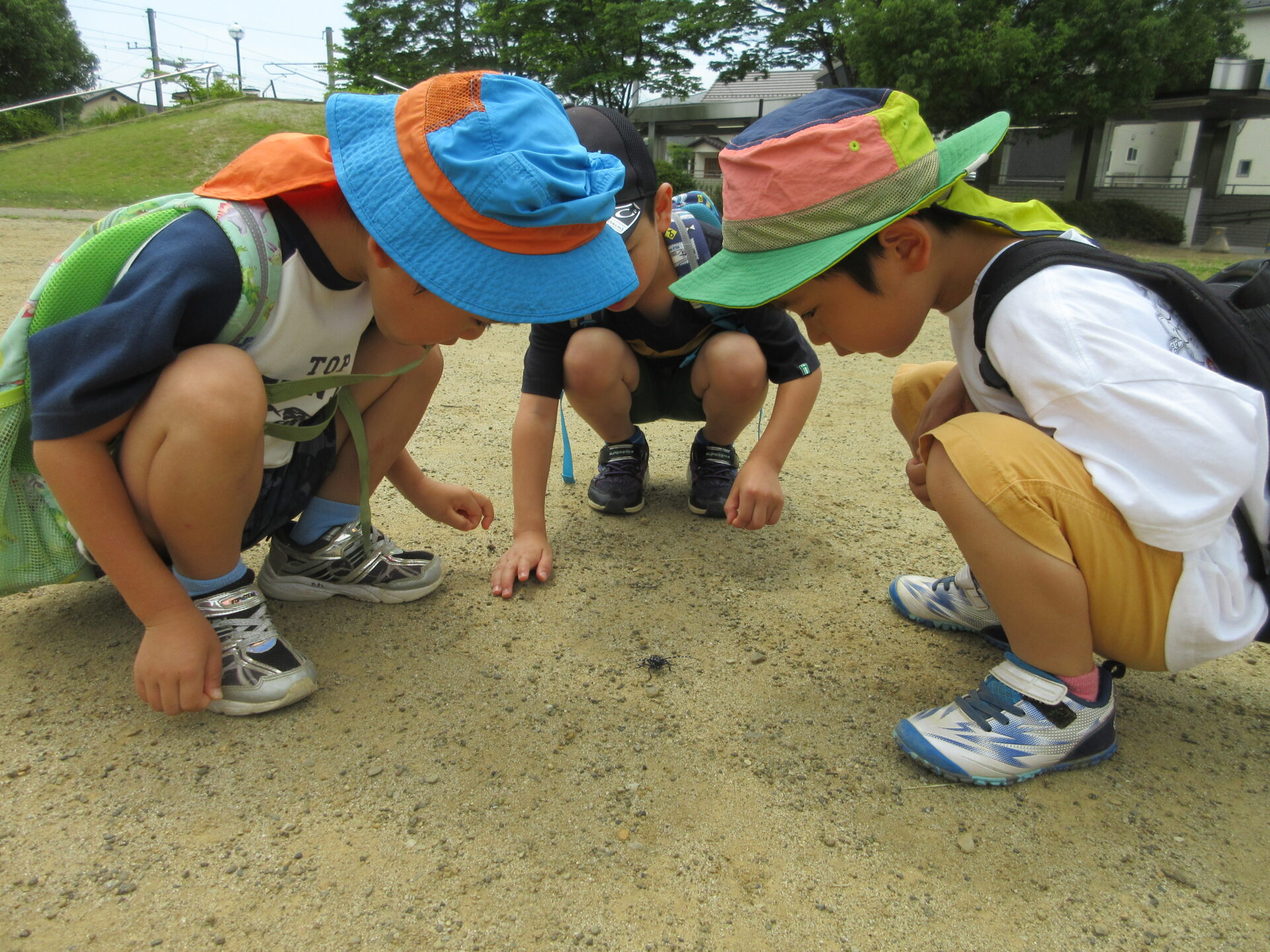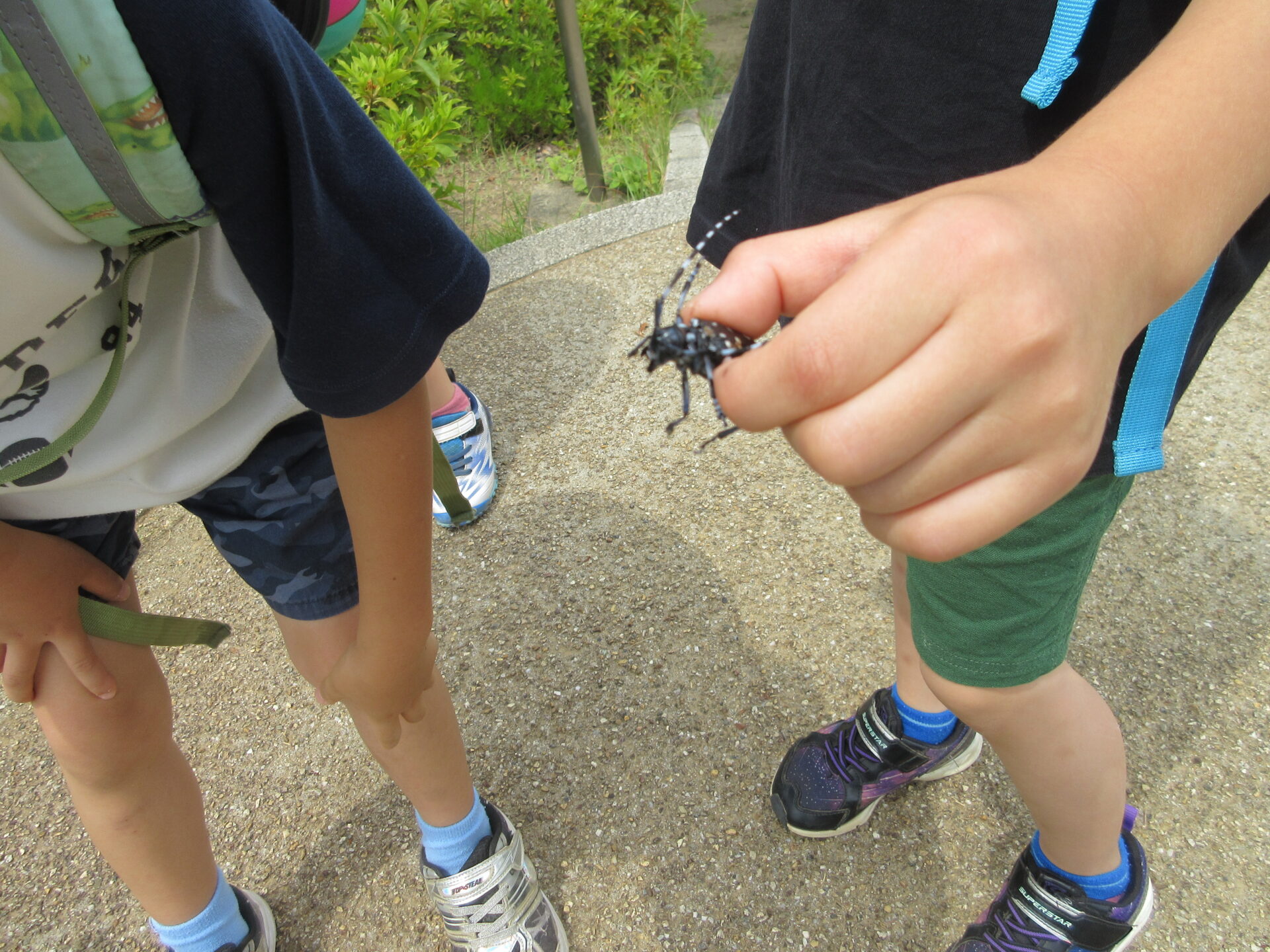 5歳児のこどもたちが散歩で捕まえた「カミキリムシ」を、こどもたちで話し合い、逃がすことにしました。