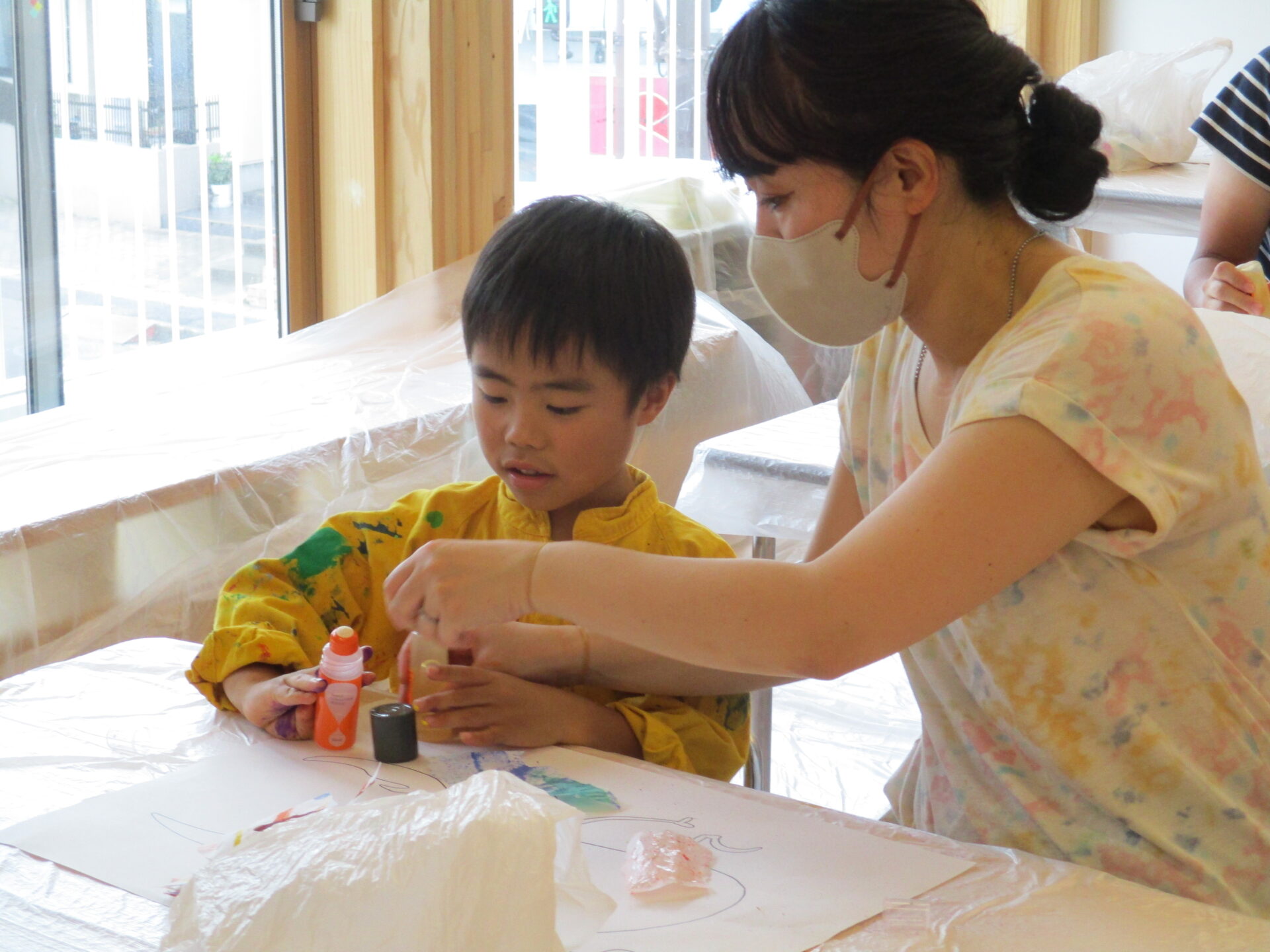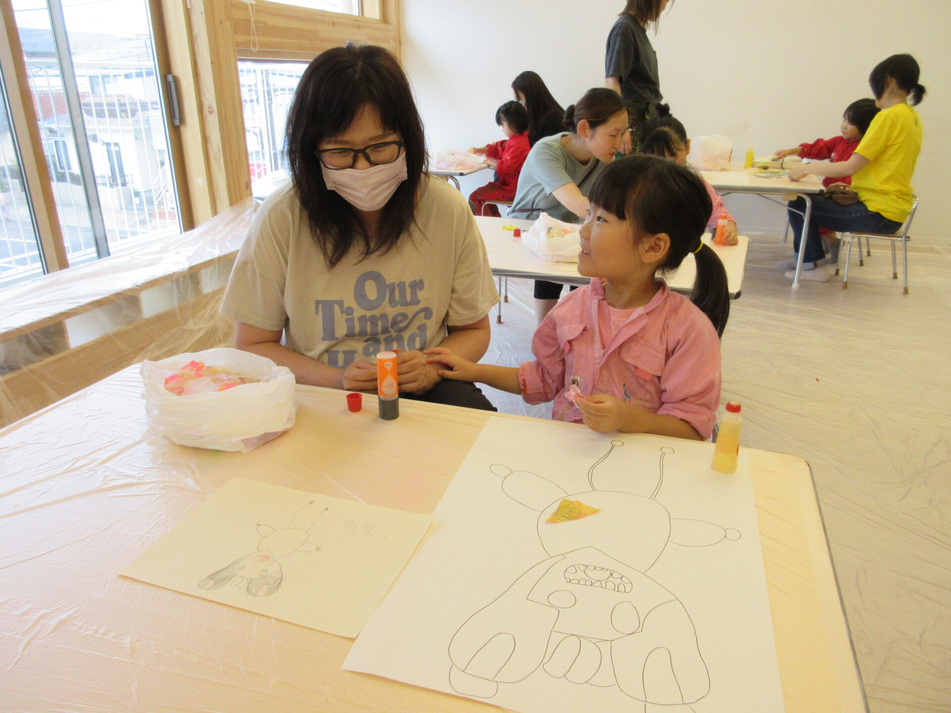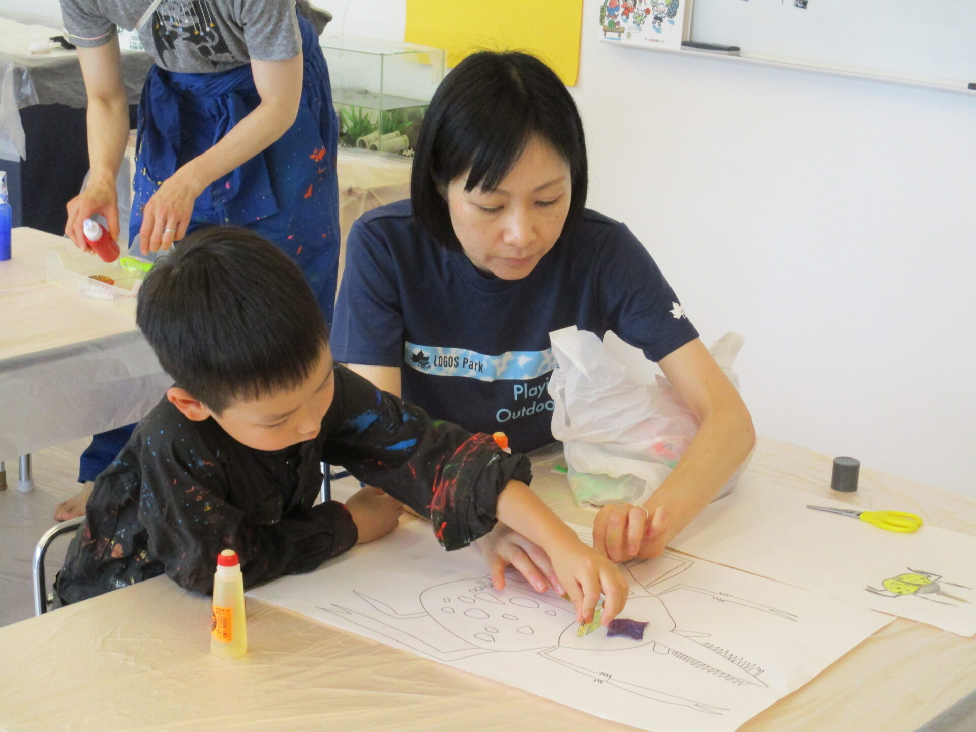ちぎり貼り活動の前に、オリジナルシート作りも親子で一緒に行いました。
