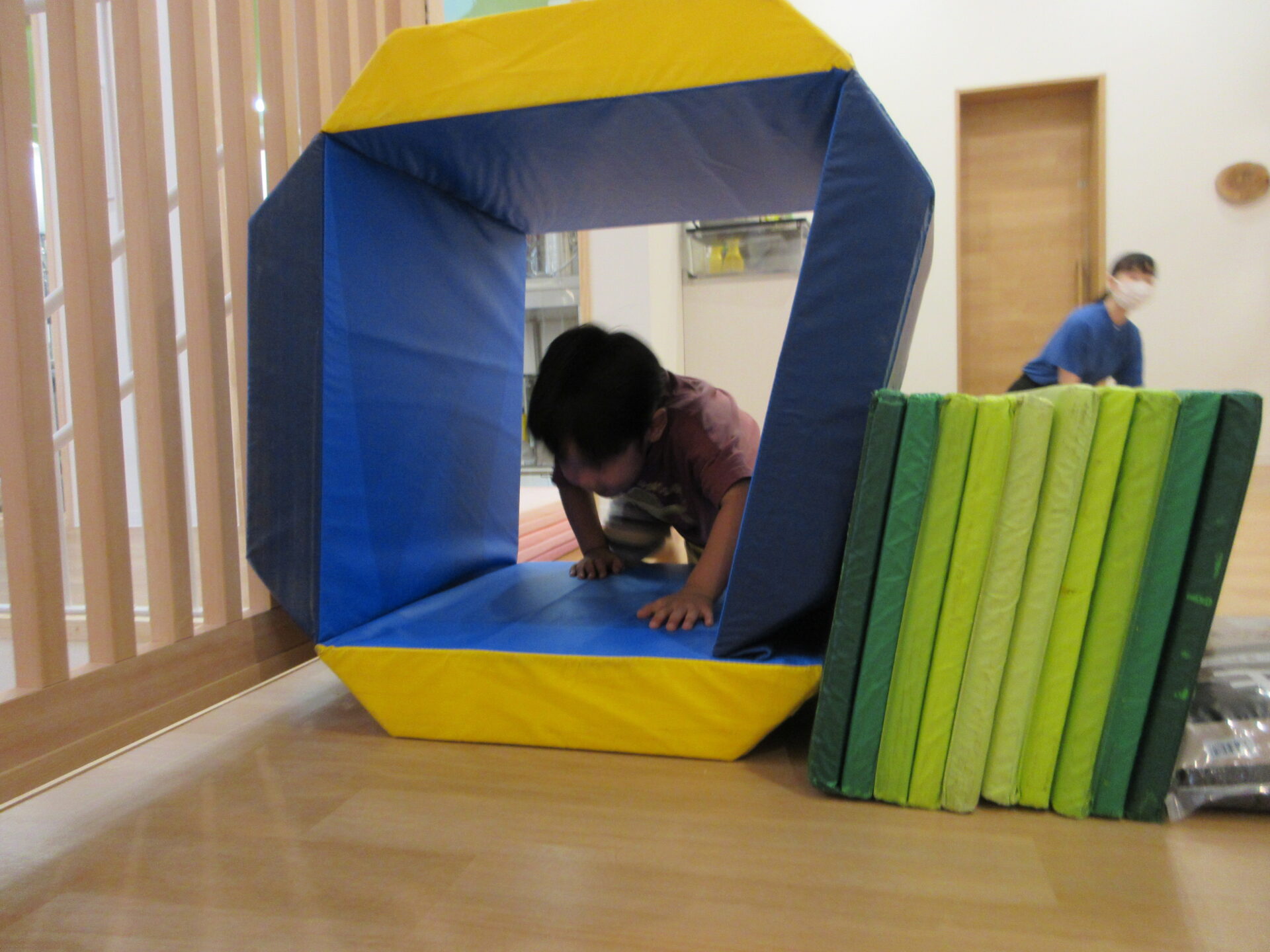 雨の日でも元気いっぱいのこどもたちとサーキット遊びを楽しみました。