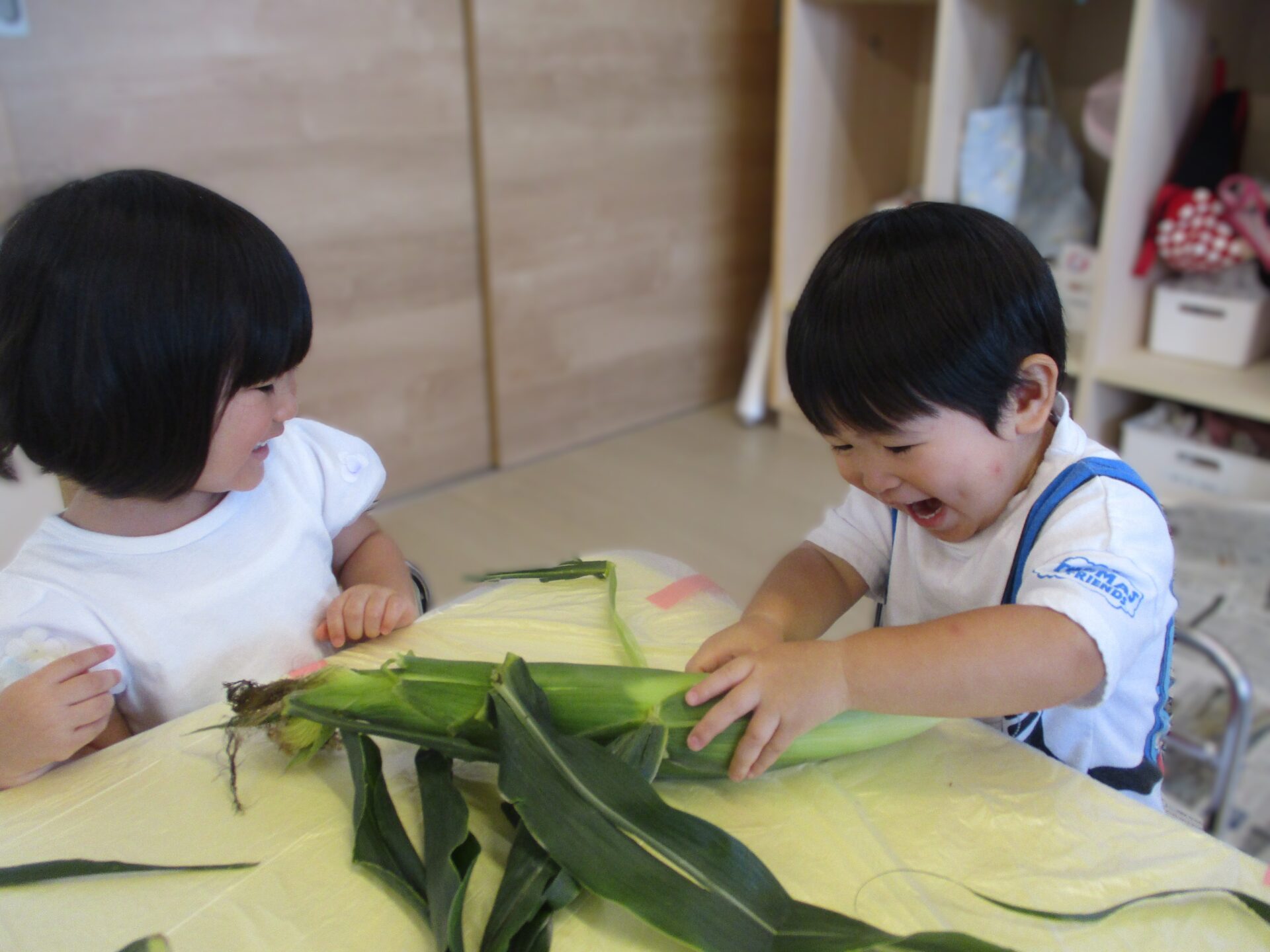 絵本からはじまった「とうもろこしの皮むき体験」でしたが、「やりたいこと、やってみたいこと」を、お友だちと一緒に体験することを楽しむ機会になりました。