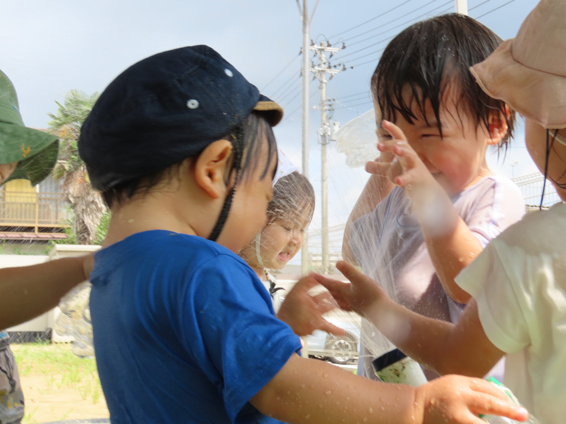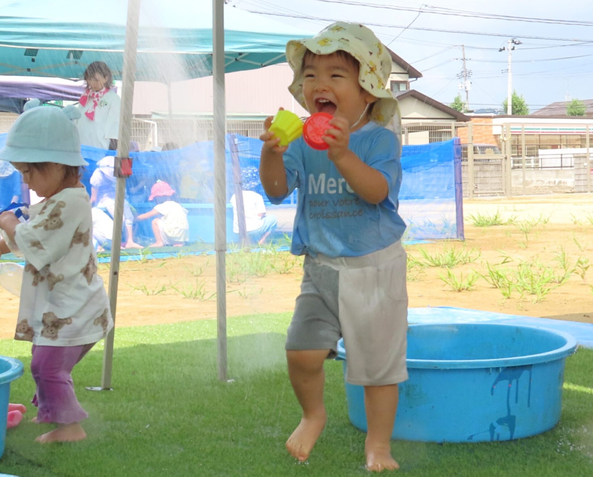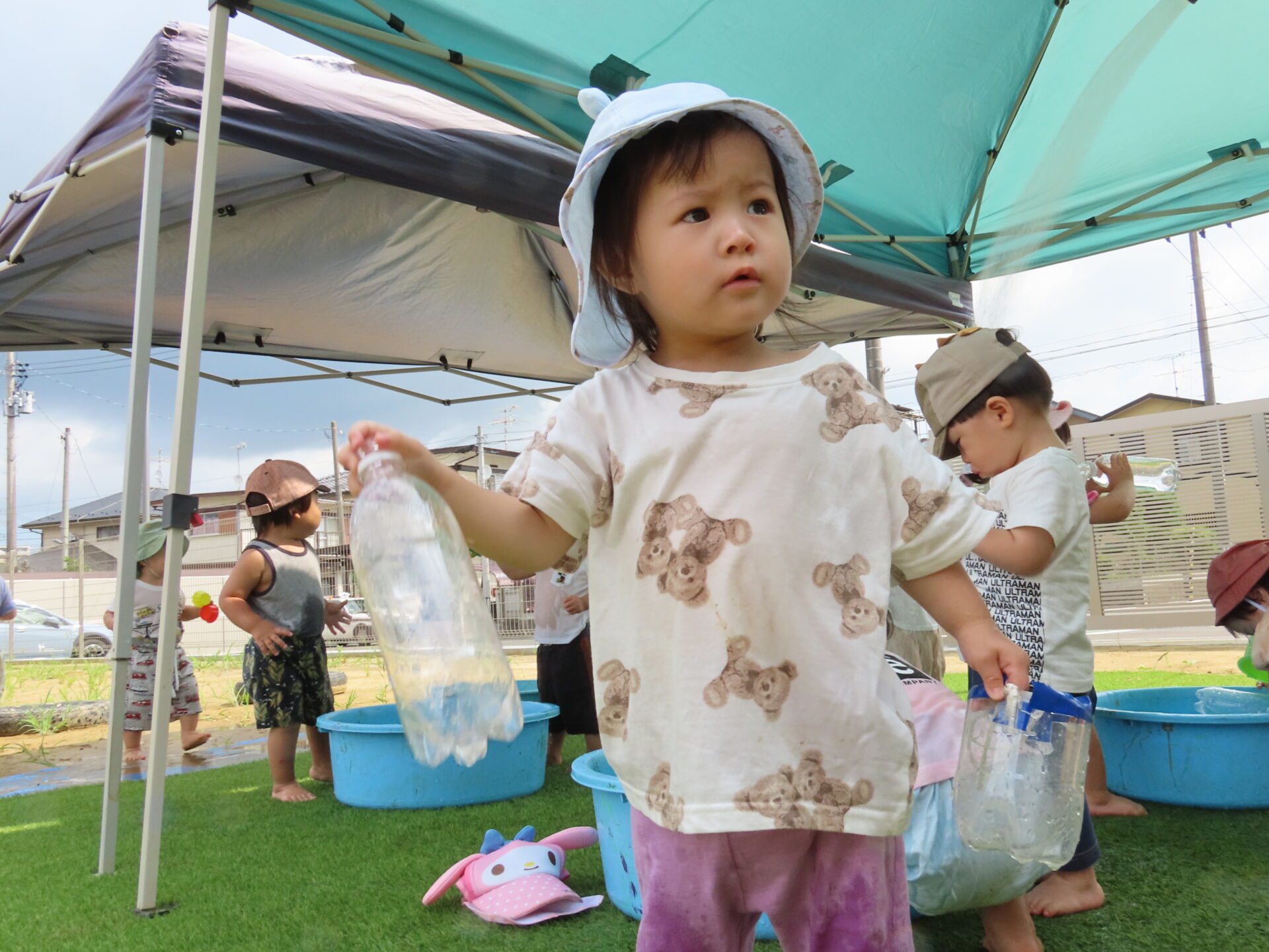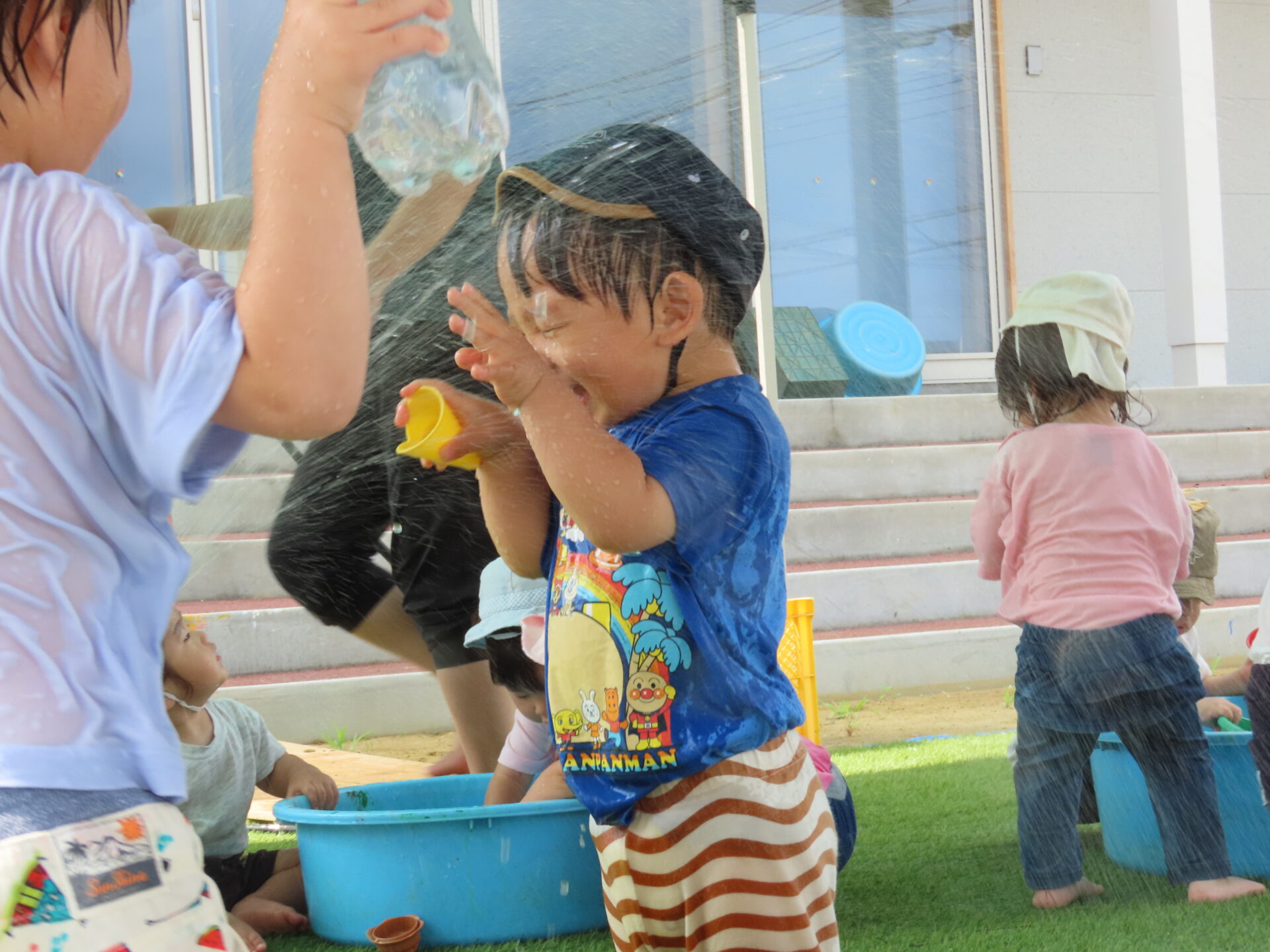 だいち組(0・1歳児)のこどもたちも、ひんやり気持ち良い水遊びが大好きです。