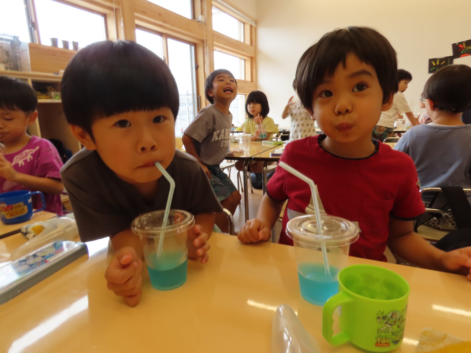 カラフルなジュースを見たこどもたちは「わー!やったー!!」と大歓声を上げて大喜びです。