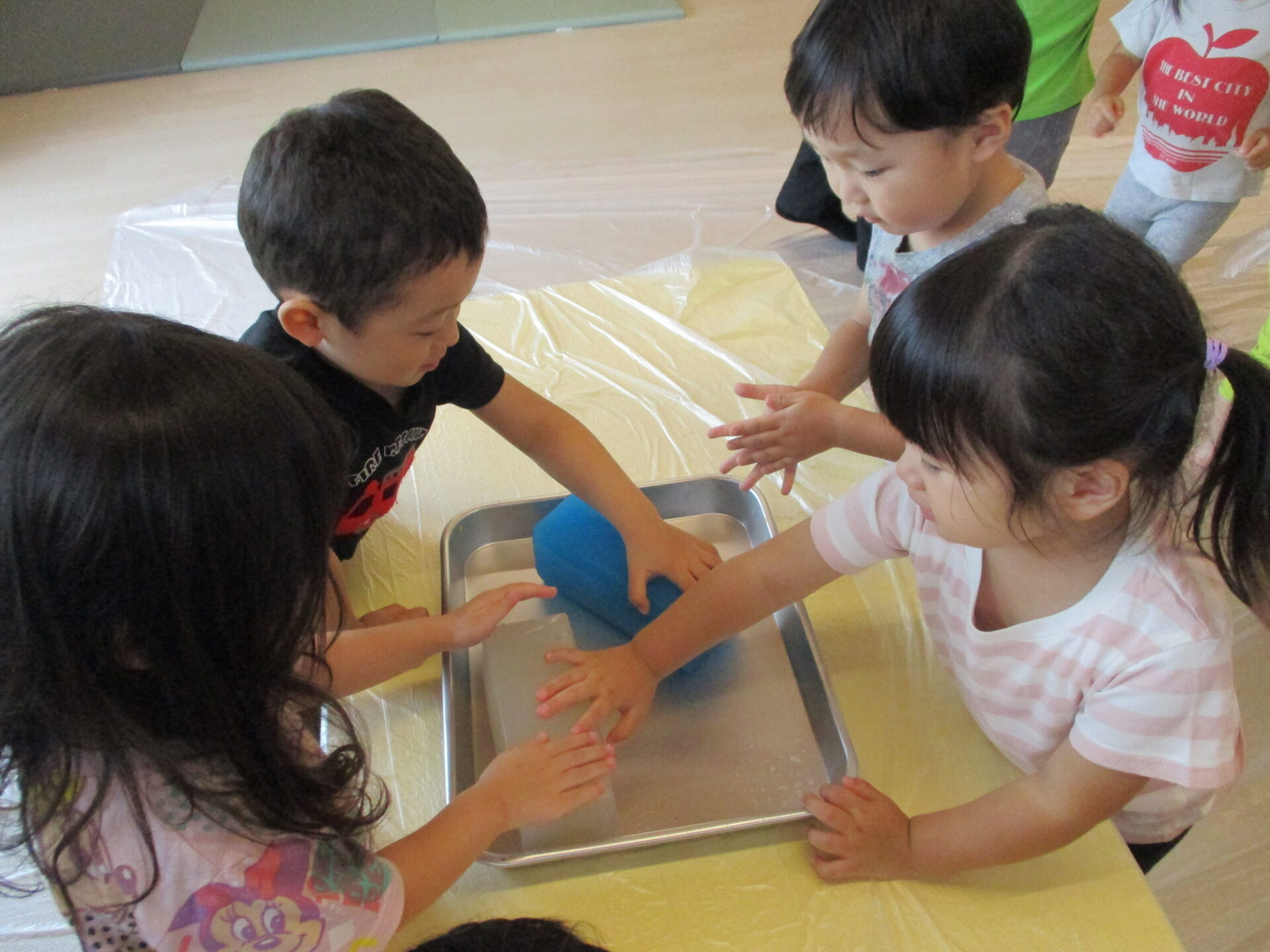 また寒天をつぶすと・・・先ほどとは違った新しい感触に、こどもたちは夢中になっていました。