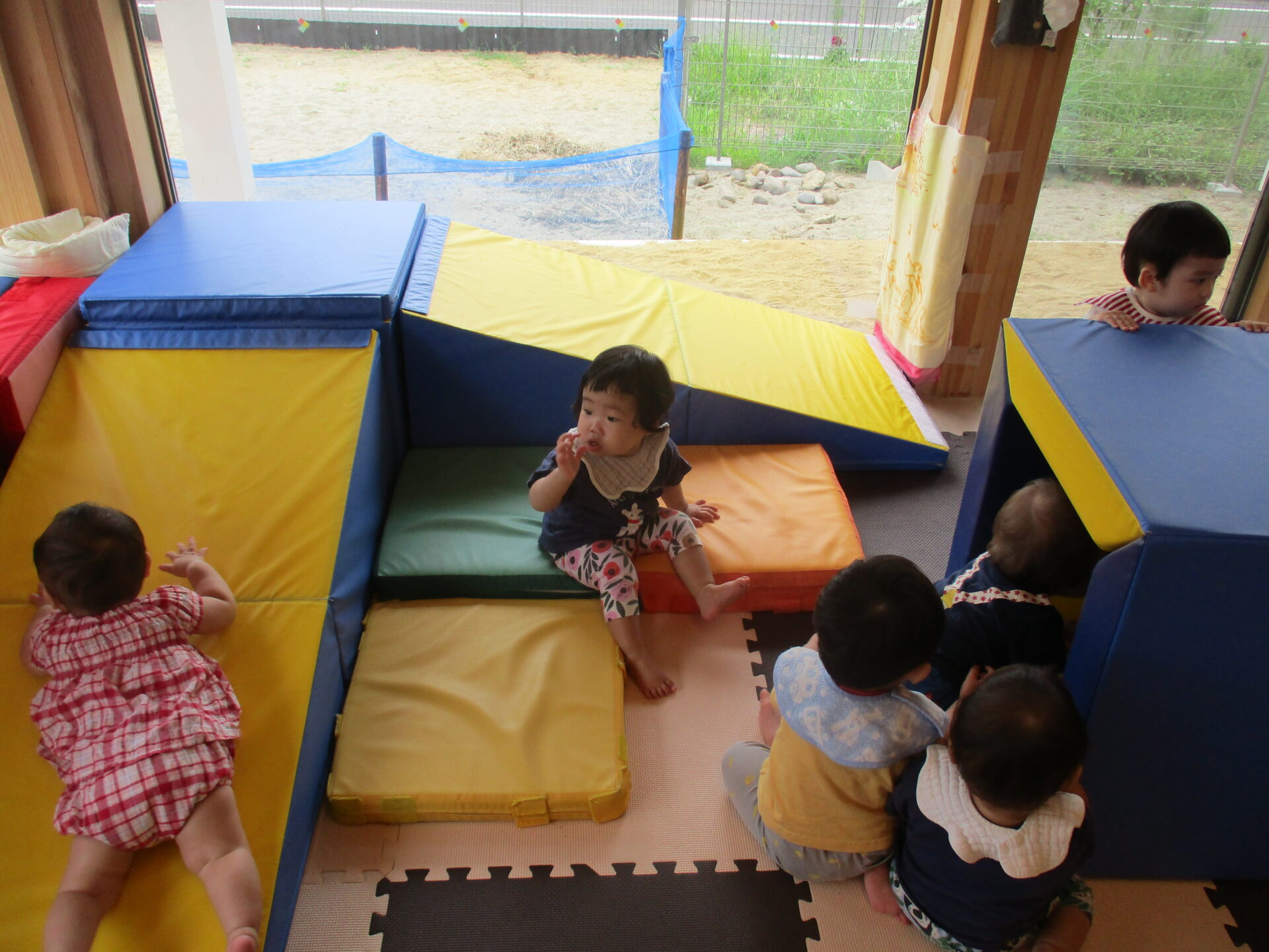 体を動かすことが大好きなうみ組(0歳児)のこどもたち。