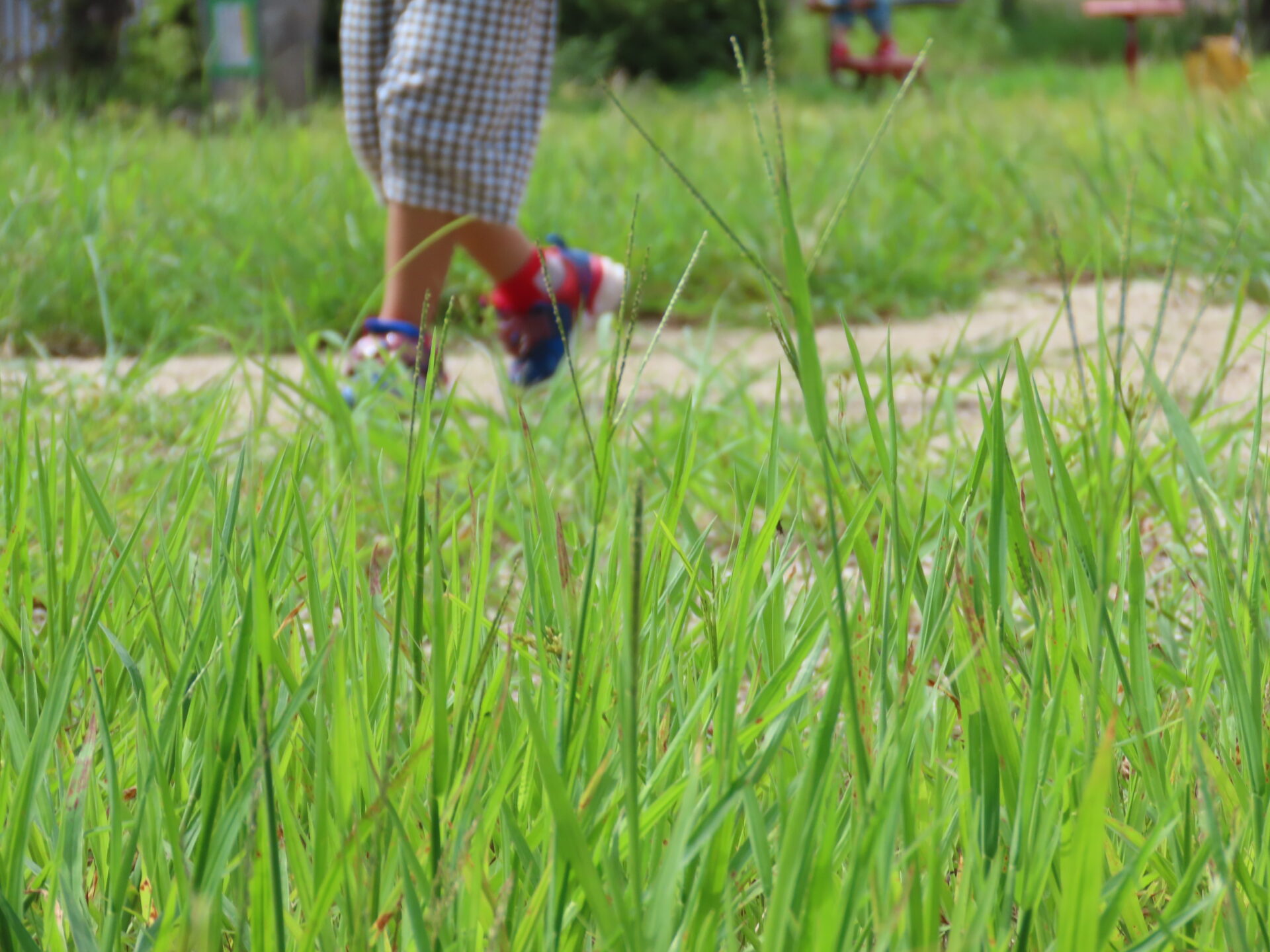 夏の間に草が伸びた公園には、虫たちの気配が…