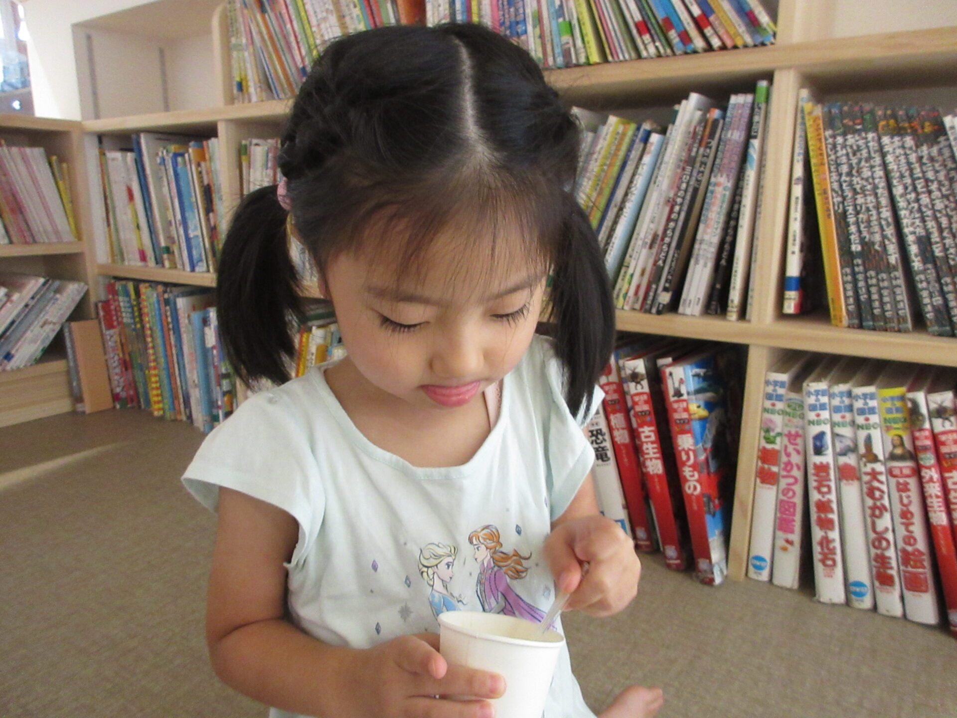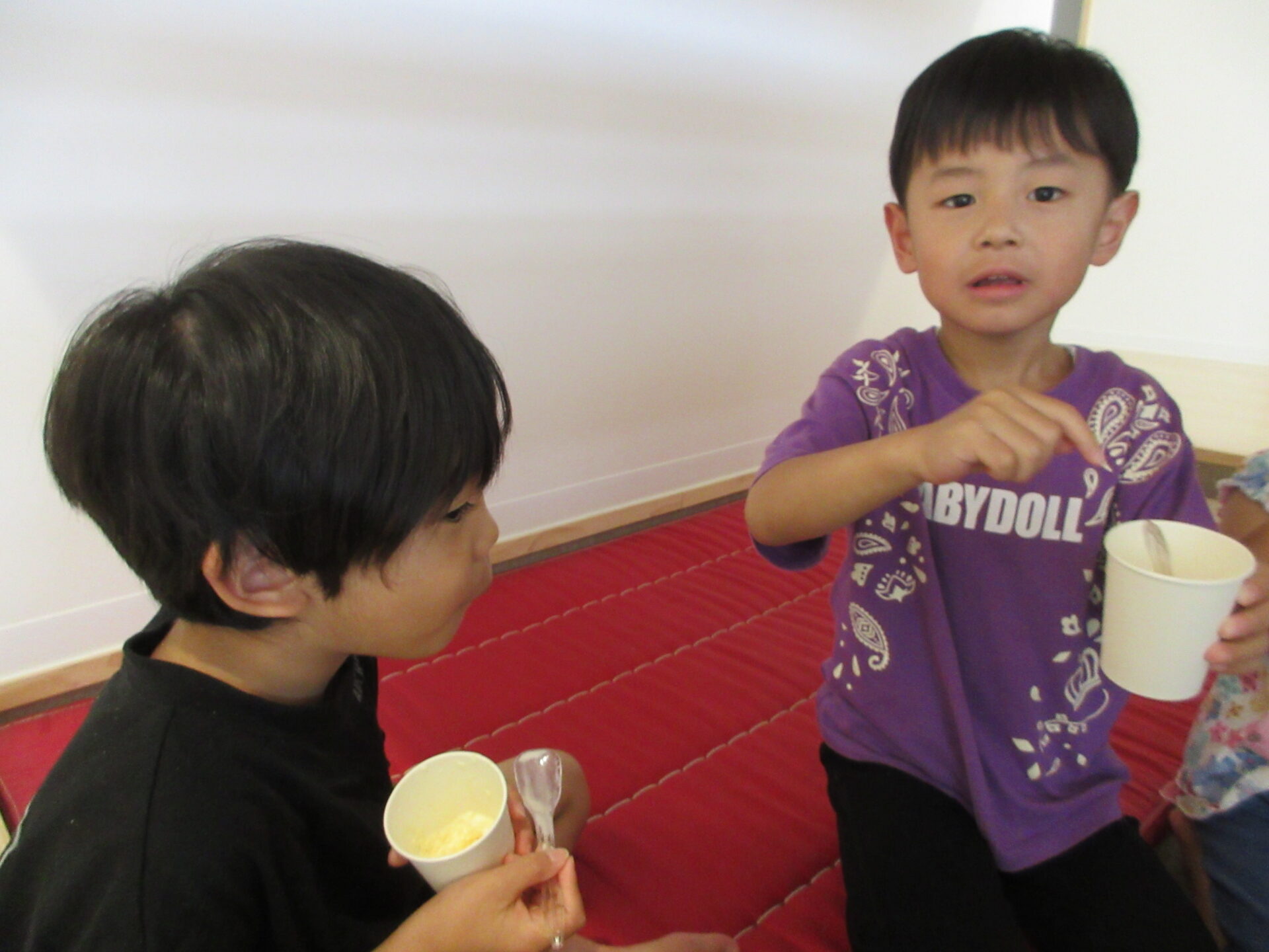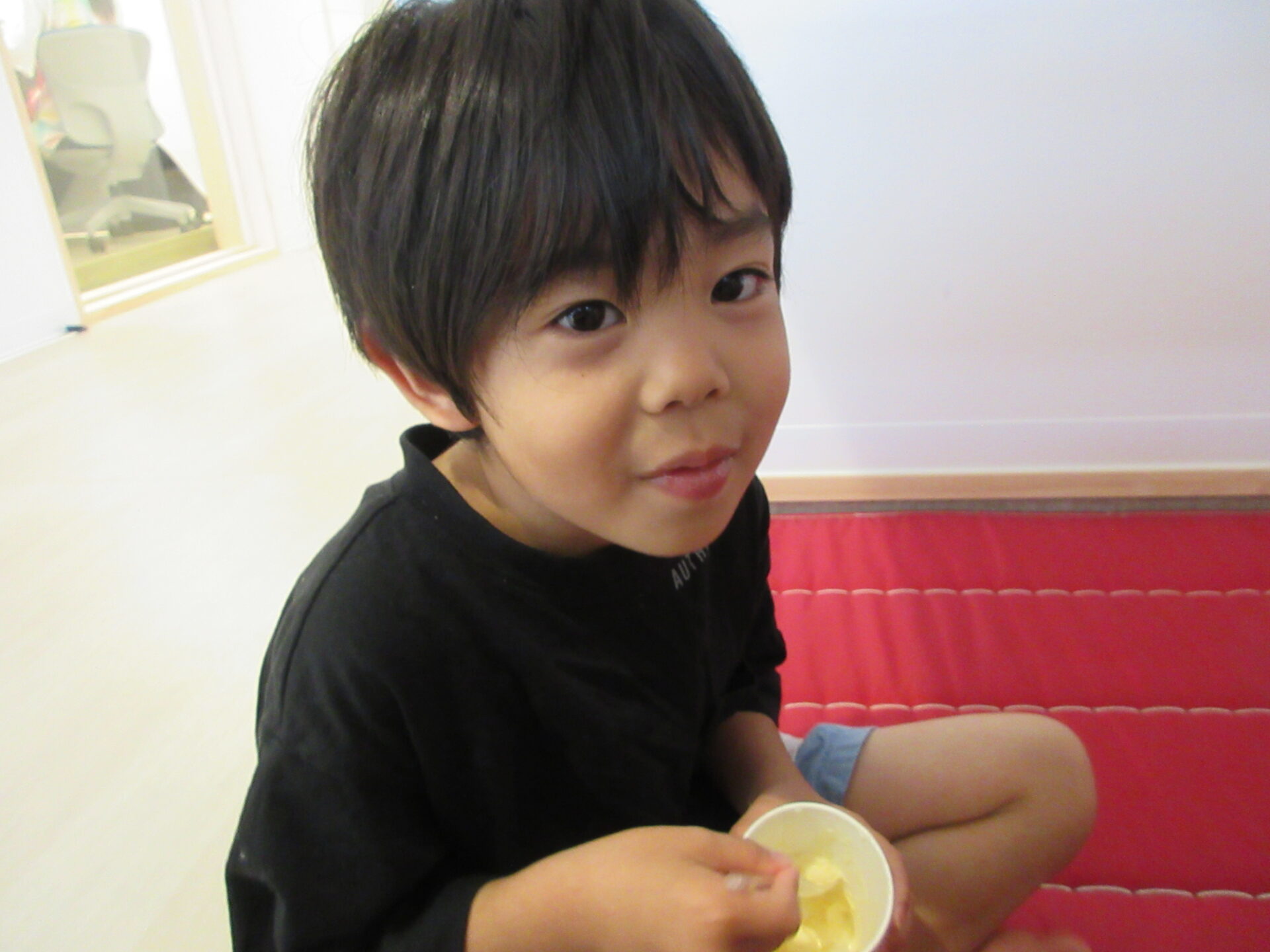 お昼寝後に完成したアイスクリームを食べると、「おいしい!」と大喜びでした。
