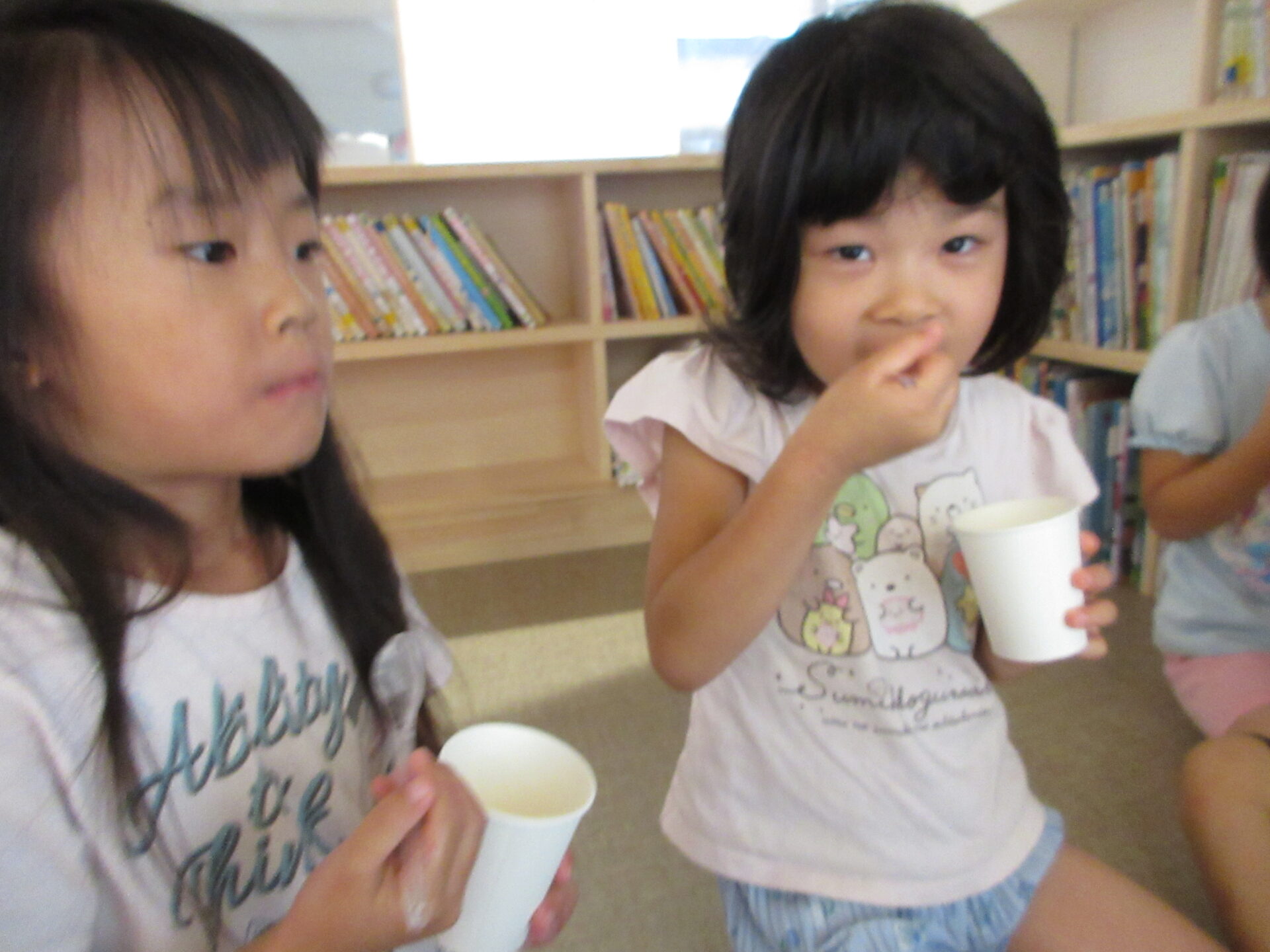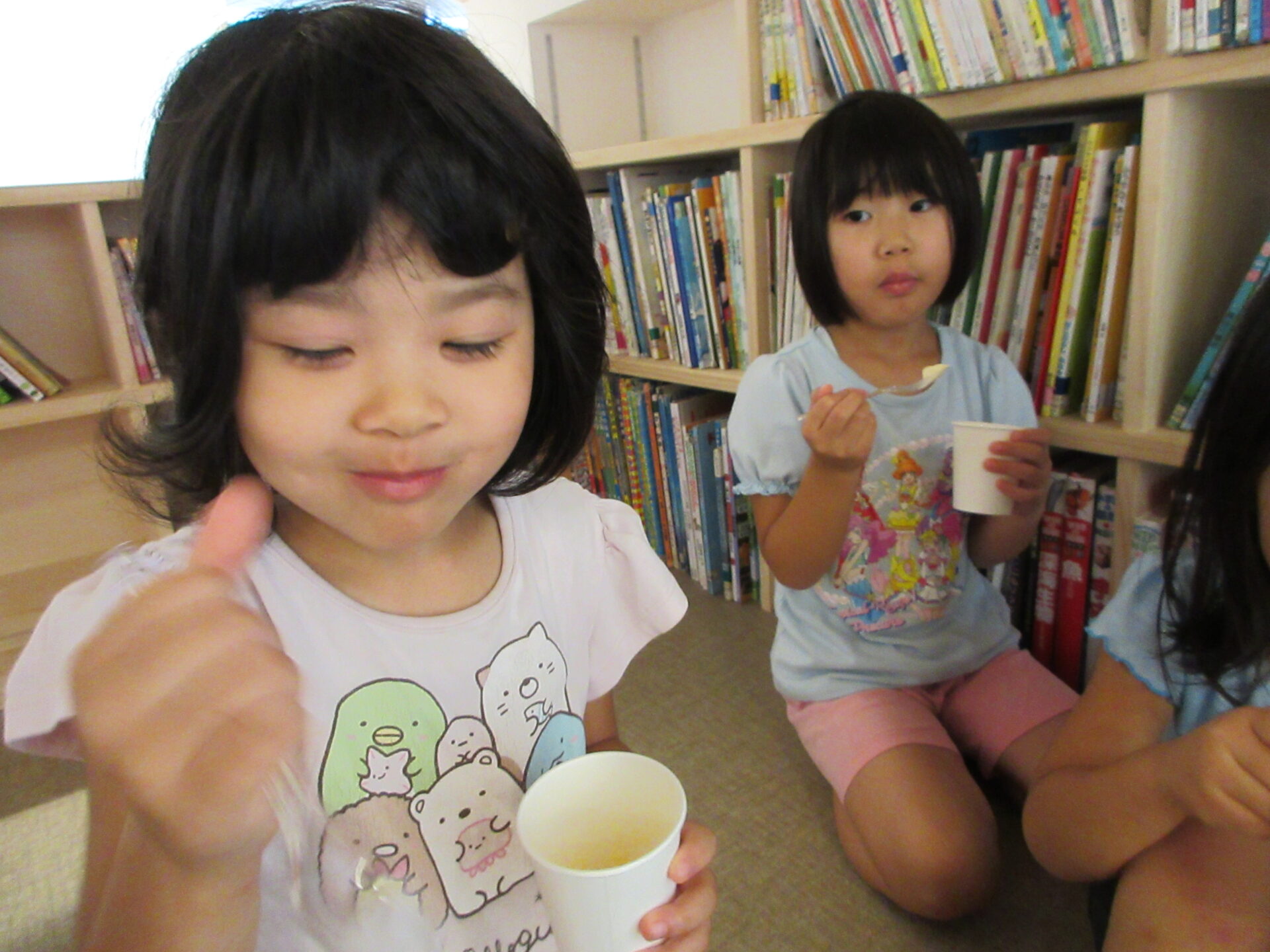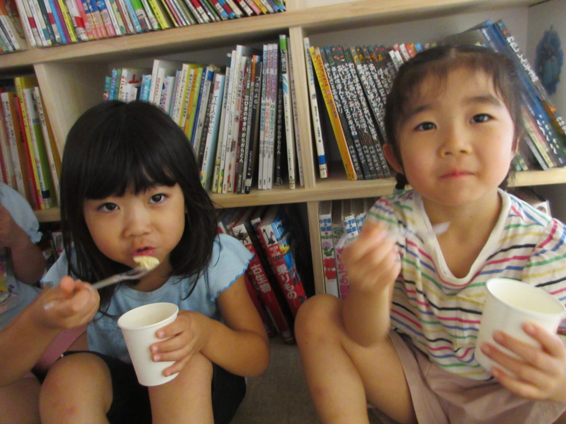 お昼寝後に完成したアイスクリームを食べると、「おいしい!」と大喜びでした。