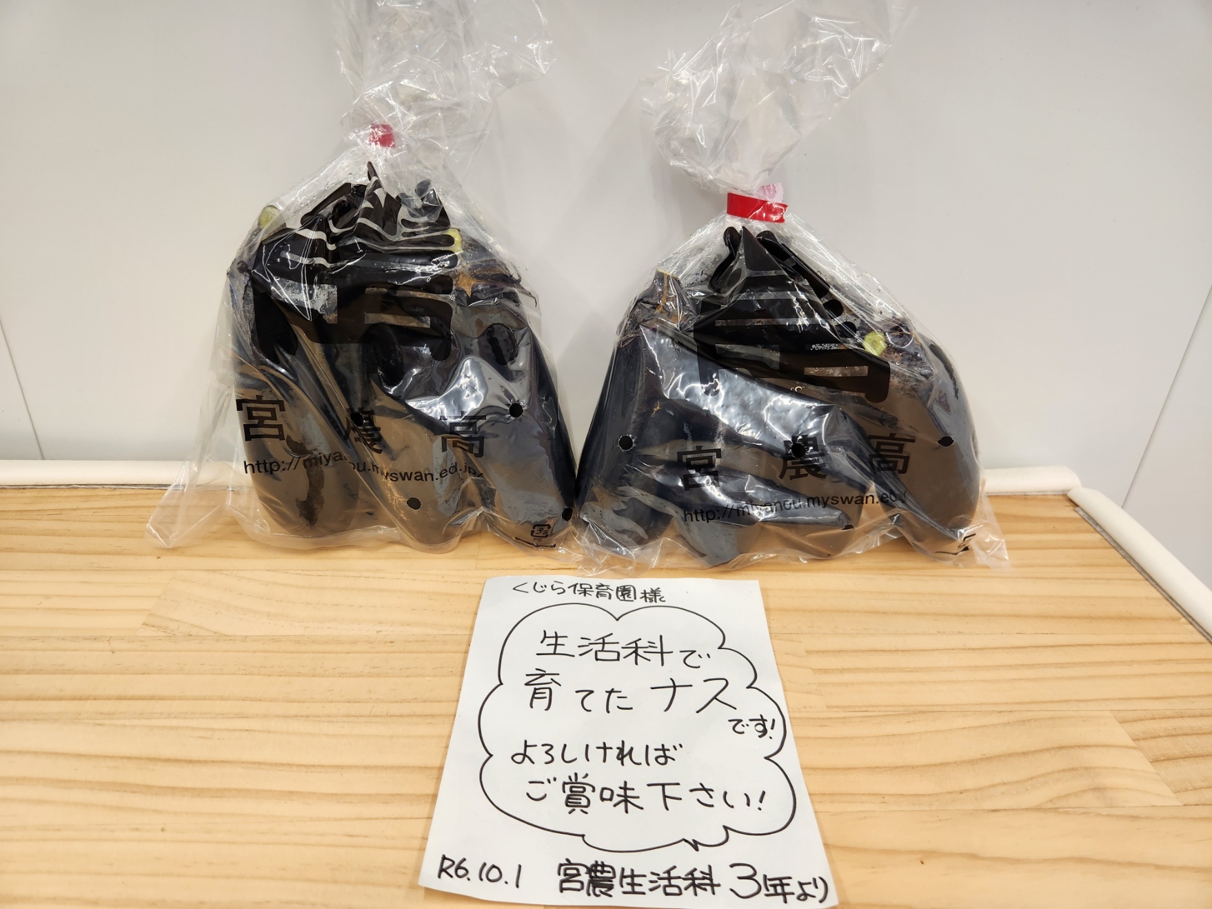 宮城県農業高等学校生活科3年生の皆様、美味しいなすをたくさんいただき、ありがとうございました。