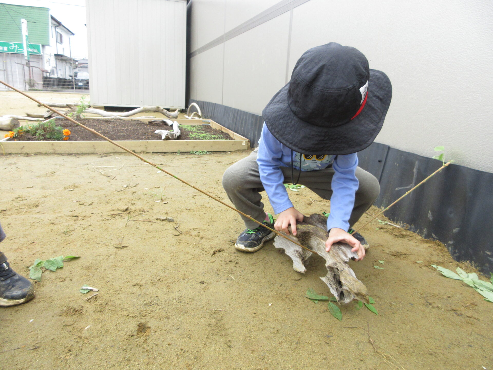 4歳児(そら組)が、園庭で遊んでいると、ニョキニョキ出ていたつるを見つけました。