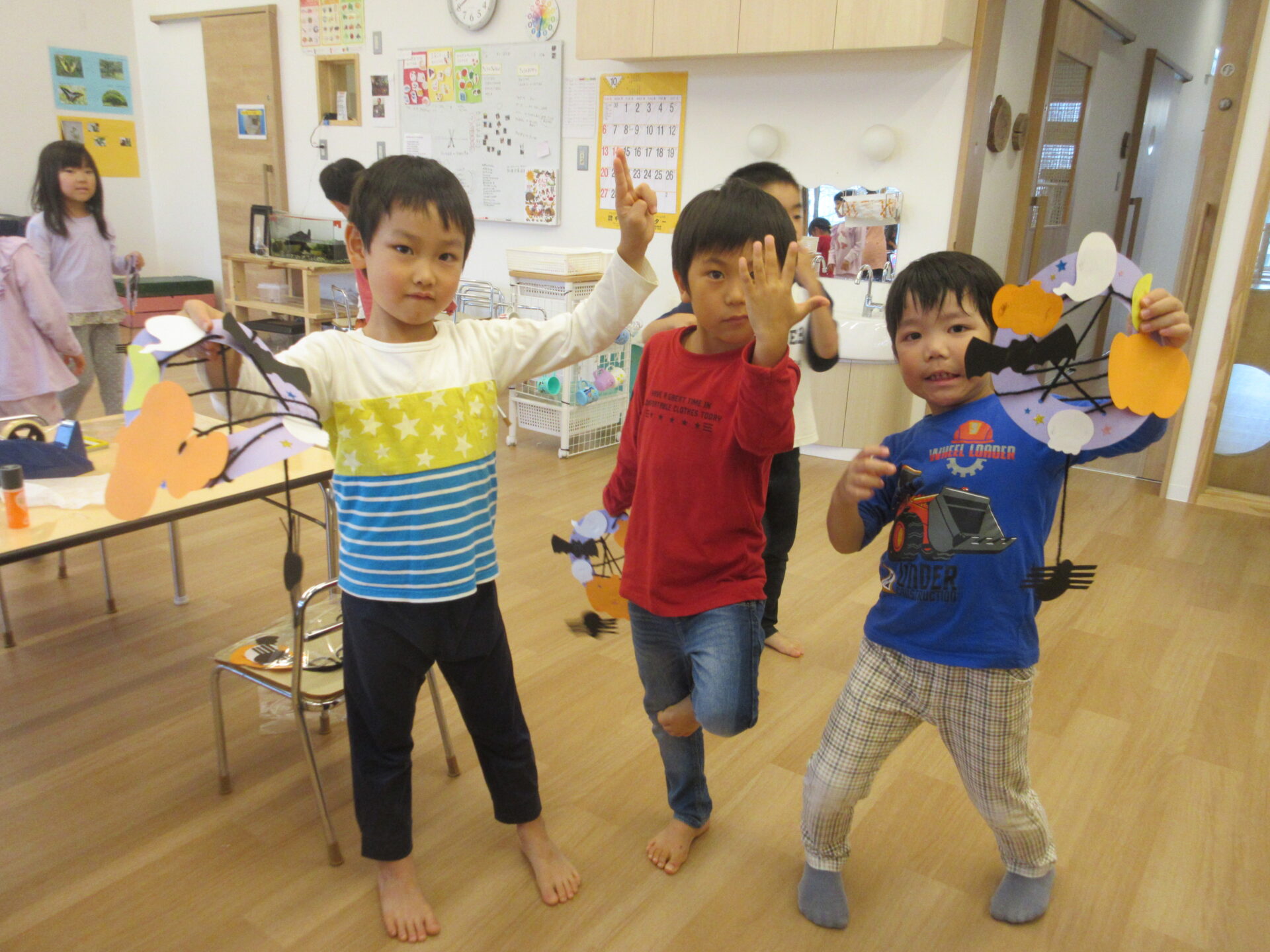 「クモの巣はけっこうむずかしい」と、つぶやきながら作っていたAちゃんですが、完成するととても嬉しそうでした。