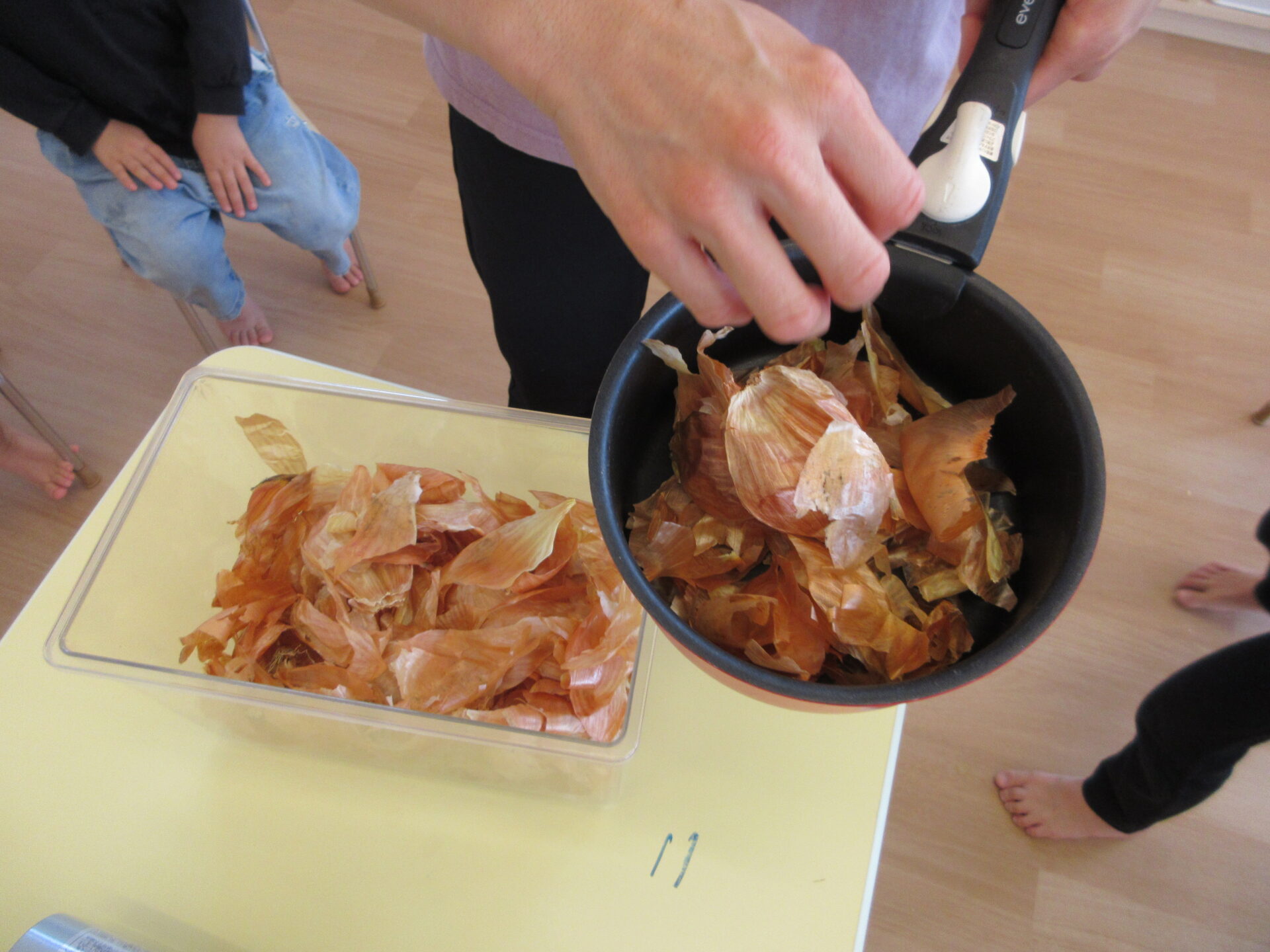 今日は「たまねぎの皮」での染物を行いました。
