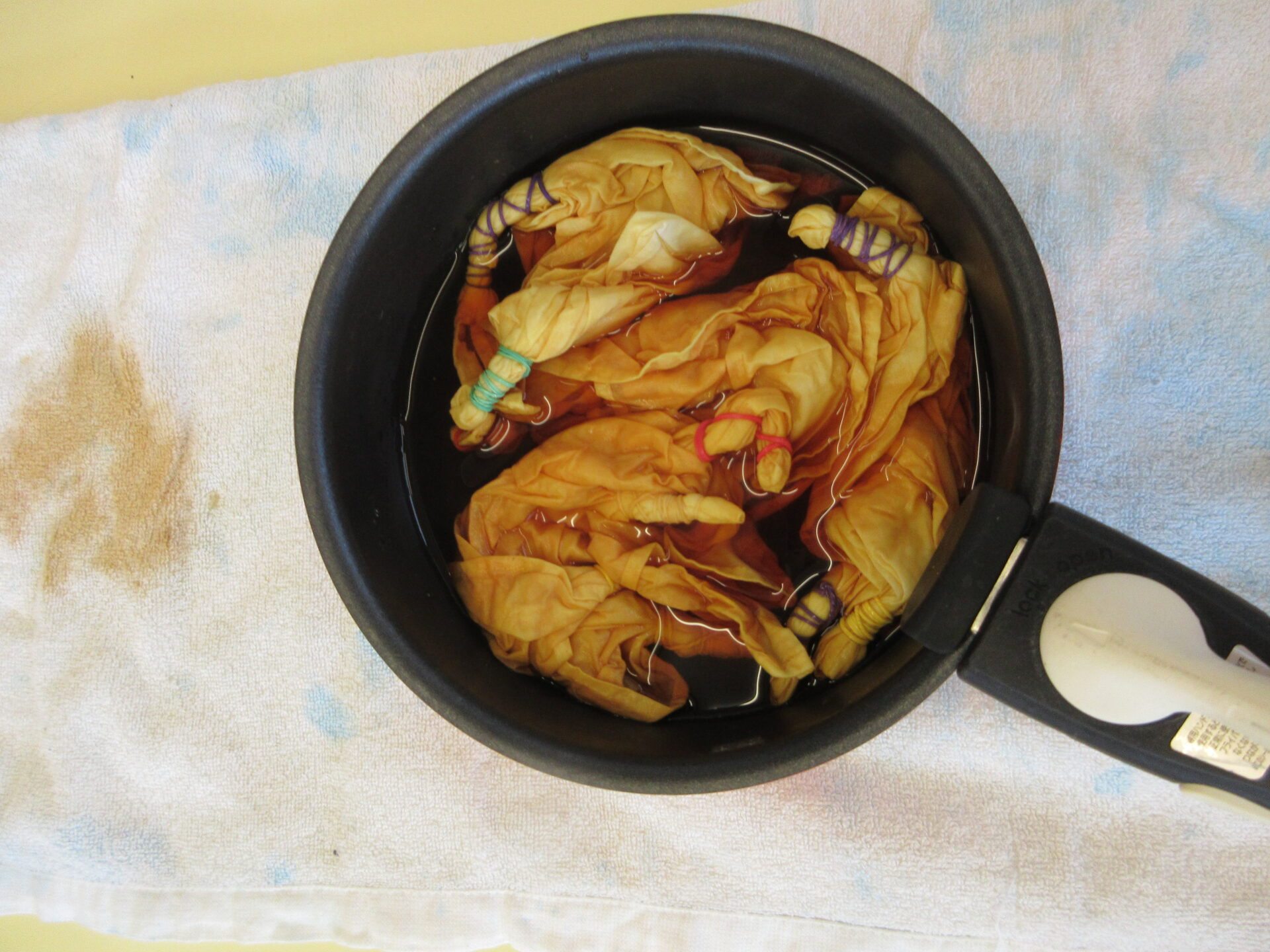 よく揉んで、液に漬け込んだ布がどう染まっていくか、楽しみです。