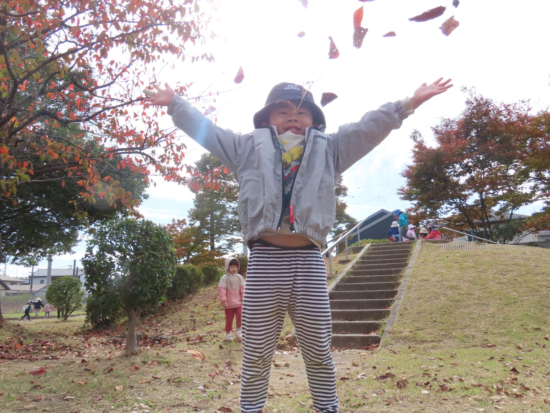 落ち葉をたくさん集めて、空に向かって投げてみたりして楽しみました。