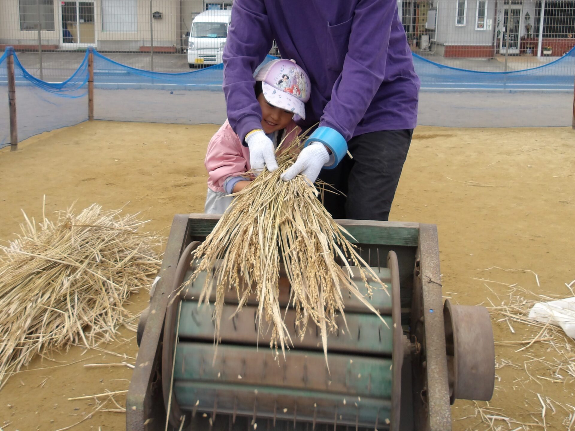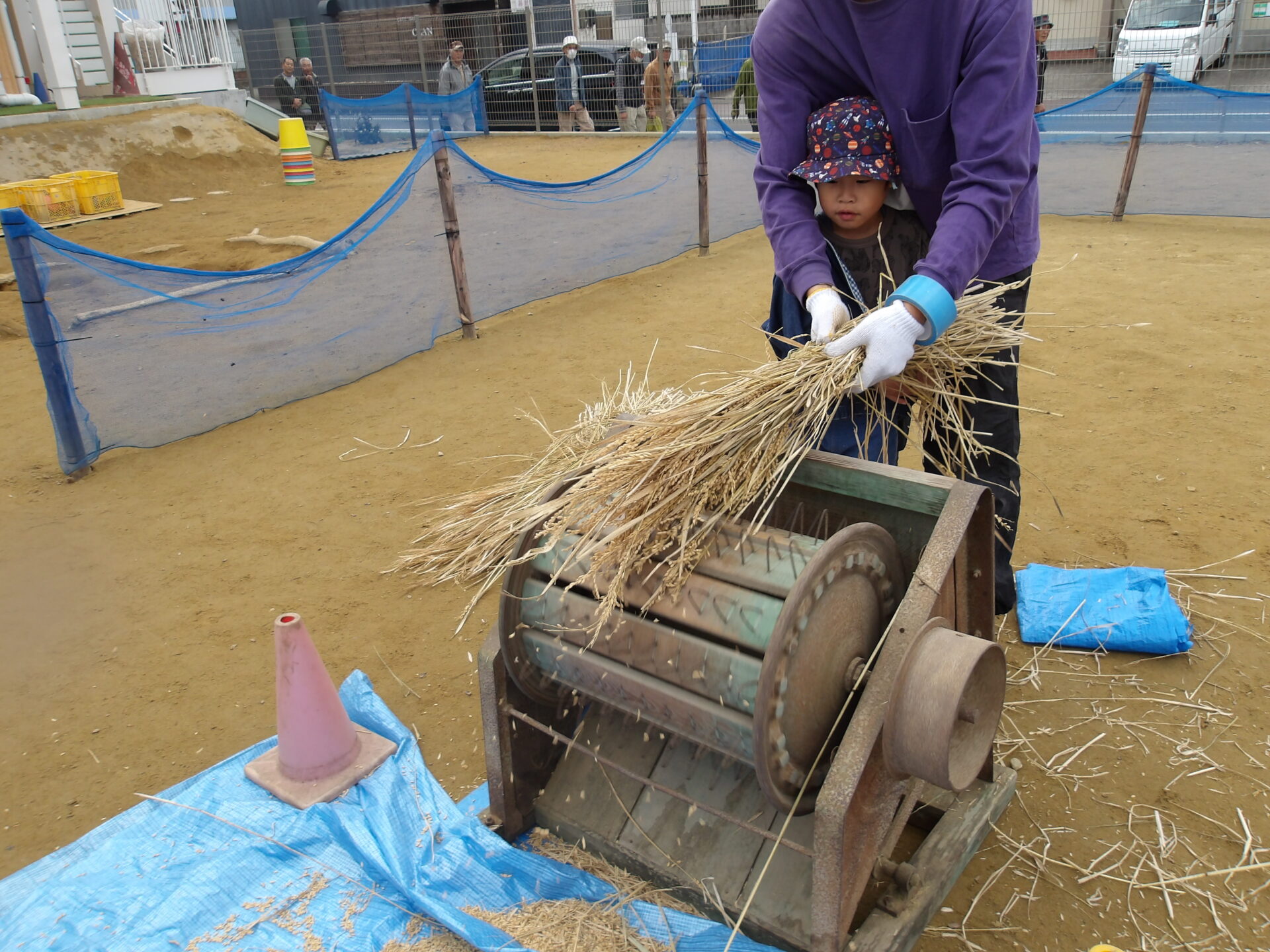 初めての足踏み脱穀機体験に大満足のそら組でした!