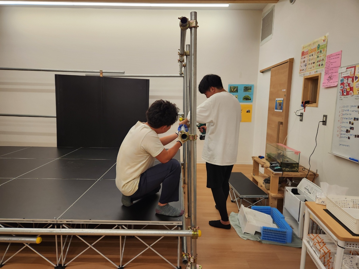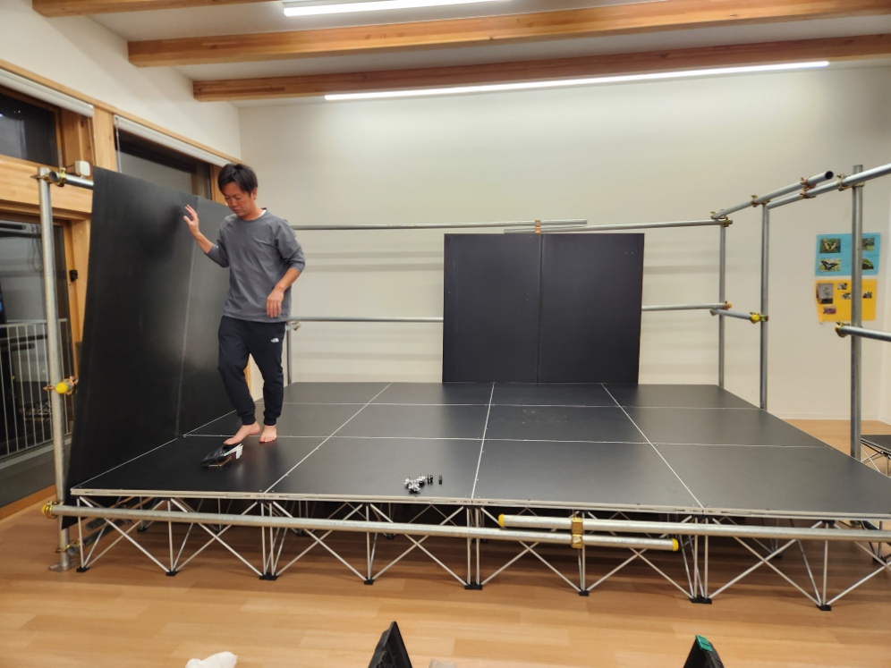 休み明けに登園してきたこどもたちは「すごい!ステージができてる!」「早くここでやりたい!」と発表会に向けてワクワクが高まっていました。