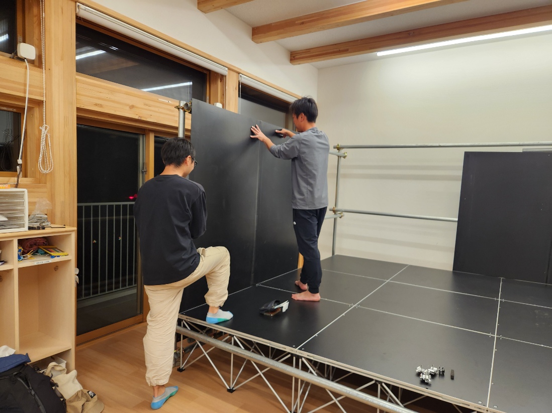 ステージ設営のため、姉妹園のバオバブ保育園から3名の男性職員がきてくれました。