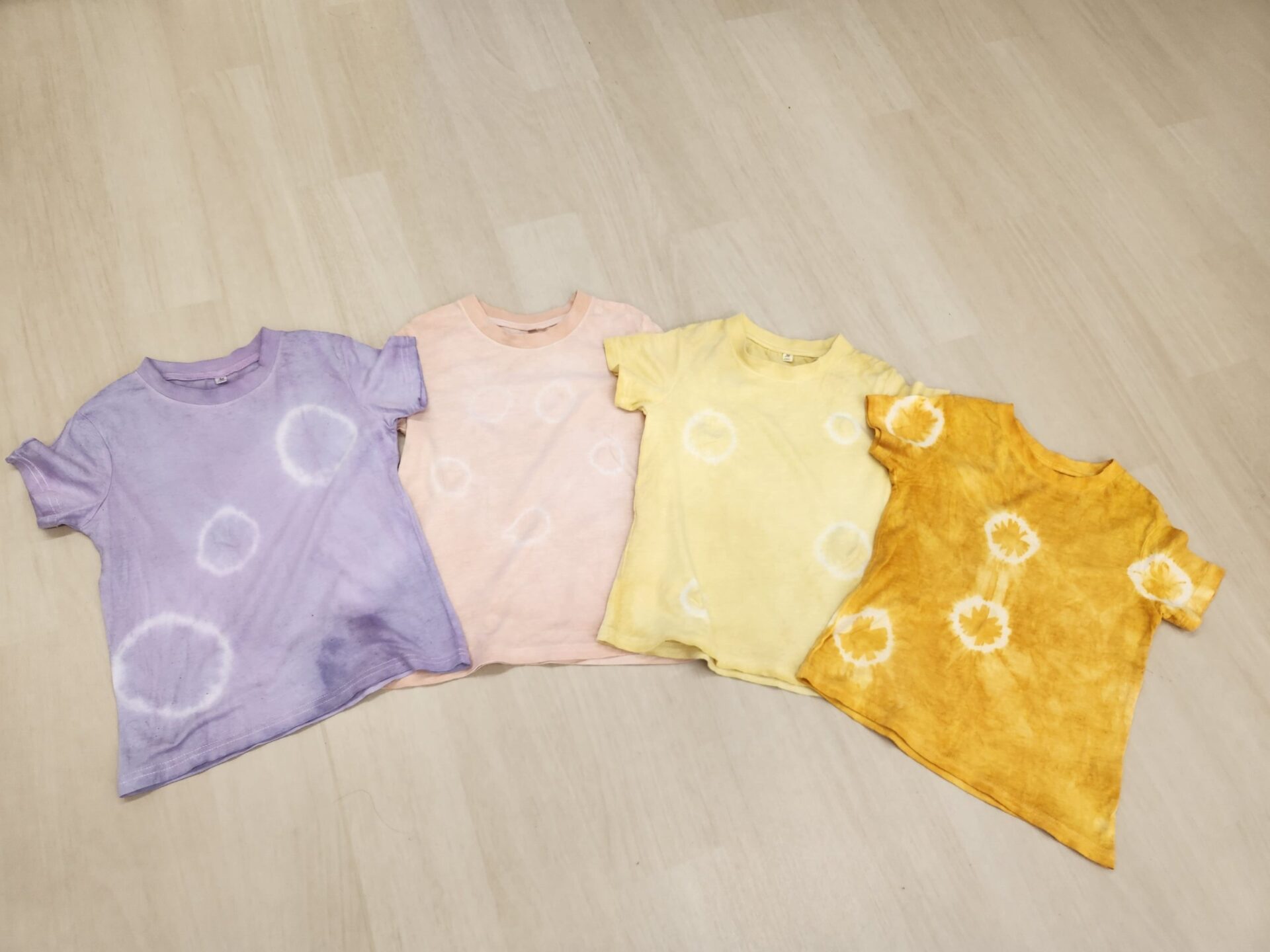 そら組では、みんなで調べて楽しんだ染めもの活動から衣装のTシャツ染めを行いました。