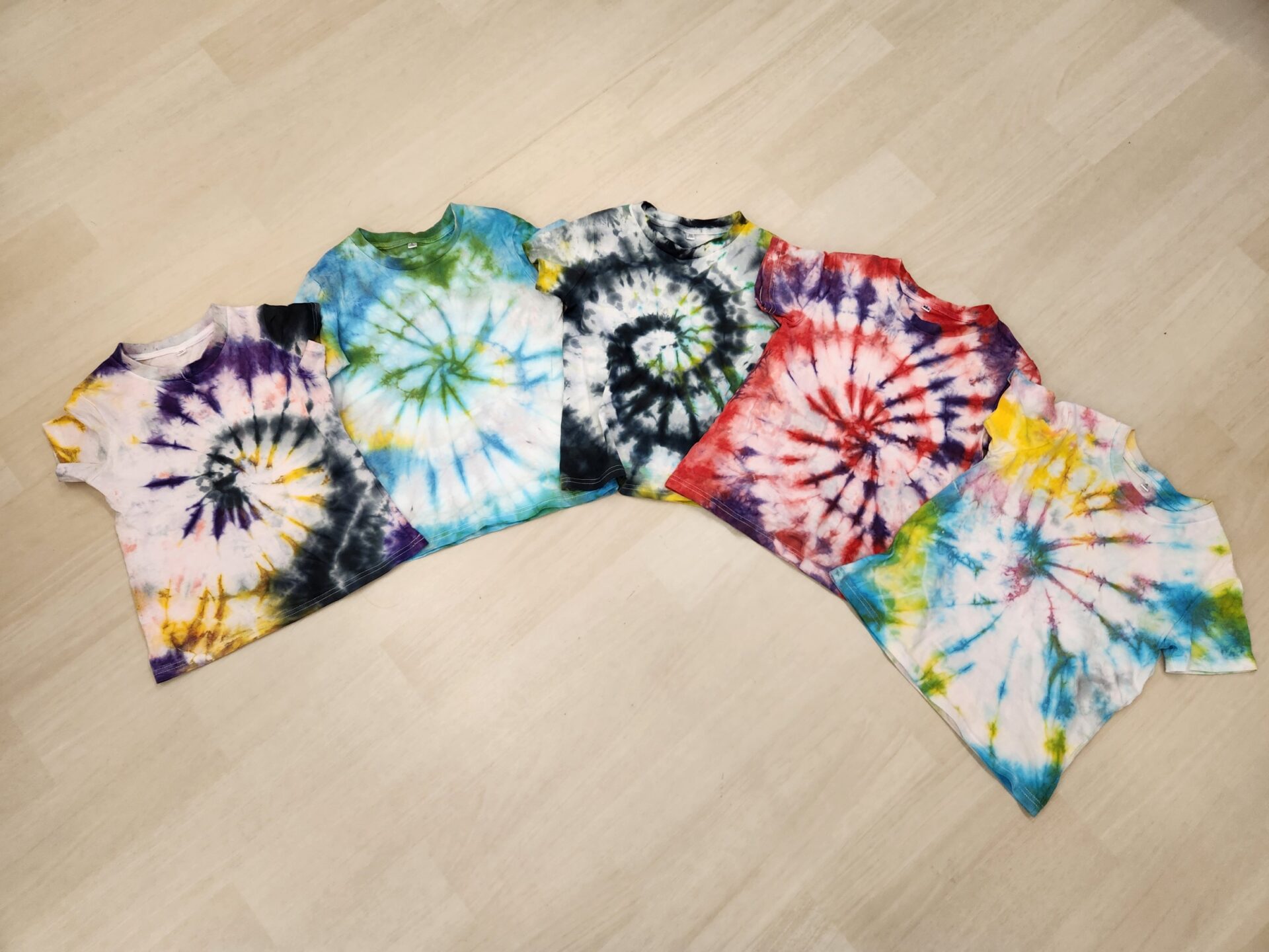 くじら組は、大好きな絵の具遊びからヒントを得て、好きな色を選び、模様を考えながらTシャツ染めを行いました。