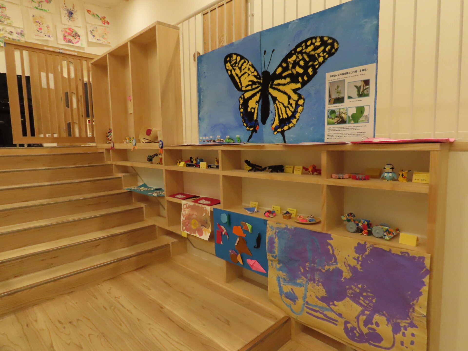 会場へ向かう途中の階段ギャラリーには、こどもたちの作品を展示しています。