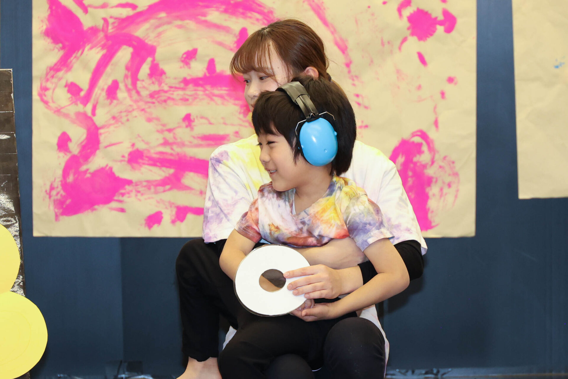 当日の衣装は、こどもたちと染めた「世界にひとつだけのオリジナルTシャツ」です。