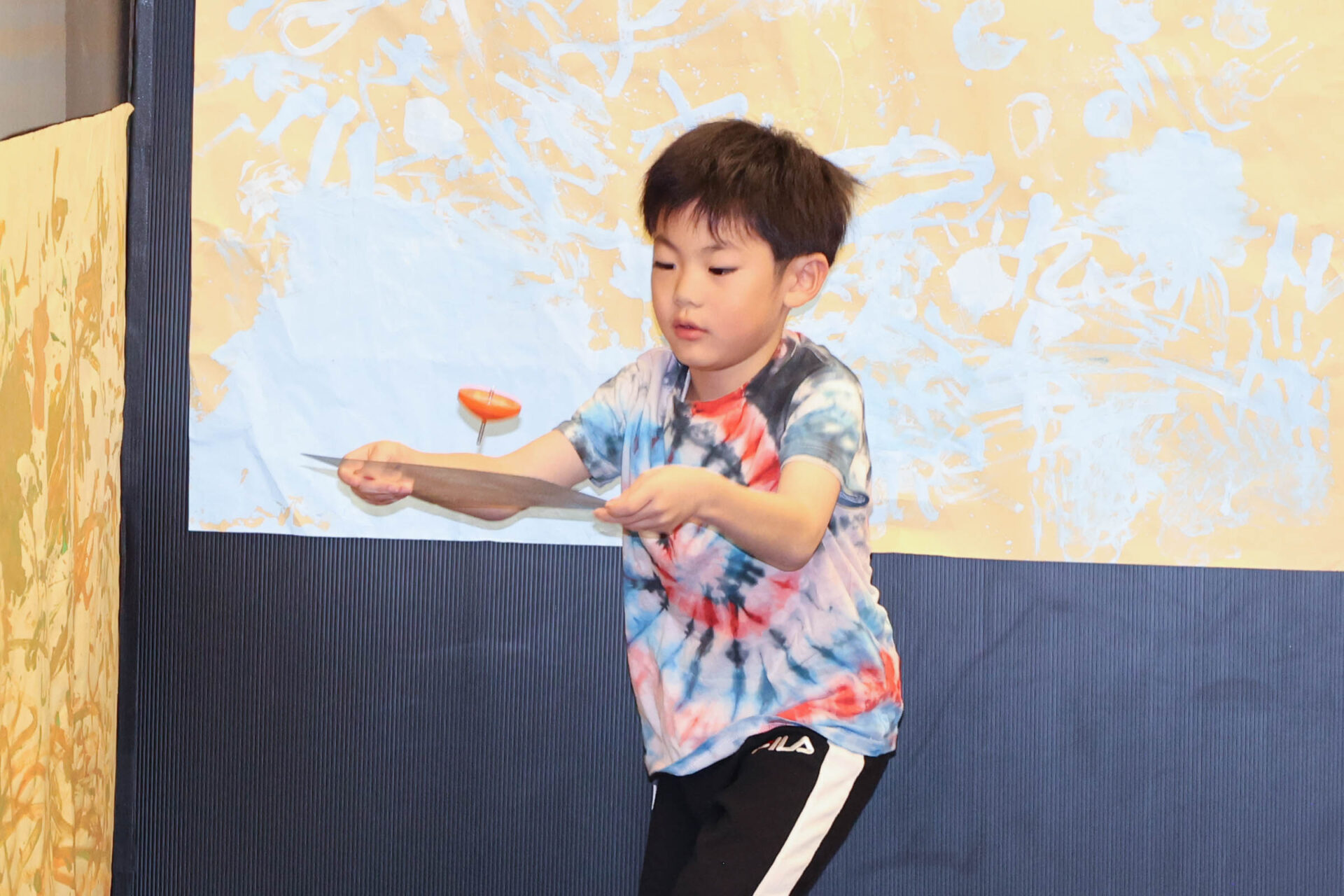 〇コマ遊び:楽しんで遊んでいるコマ遊びから、披露したい技に挑戦しました。