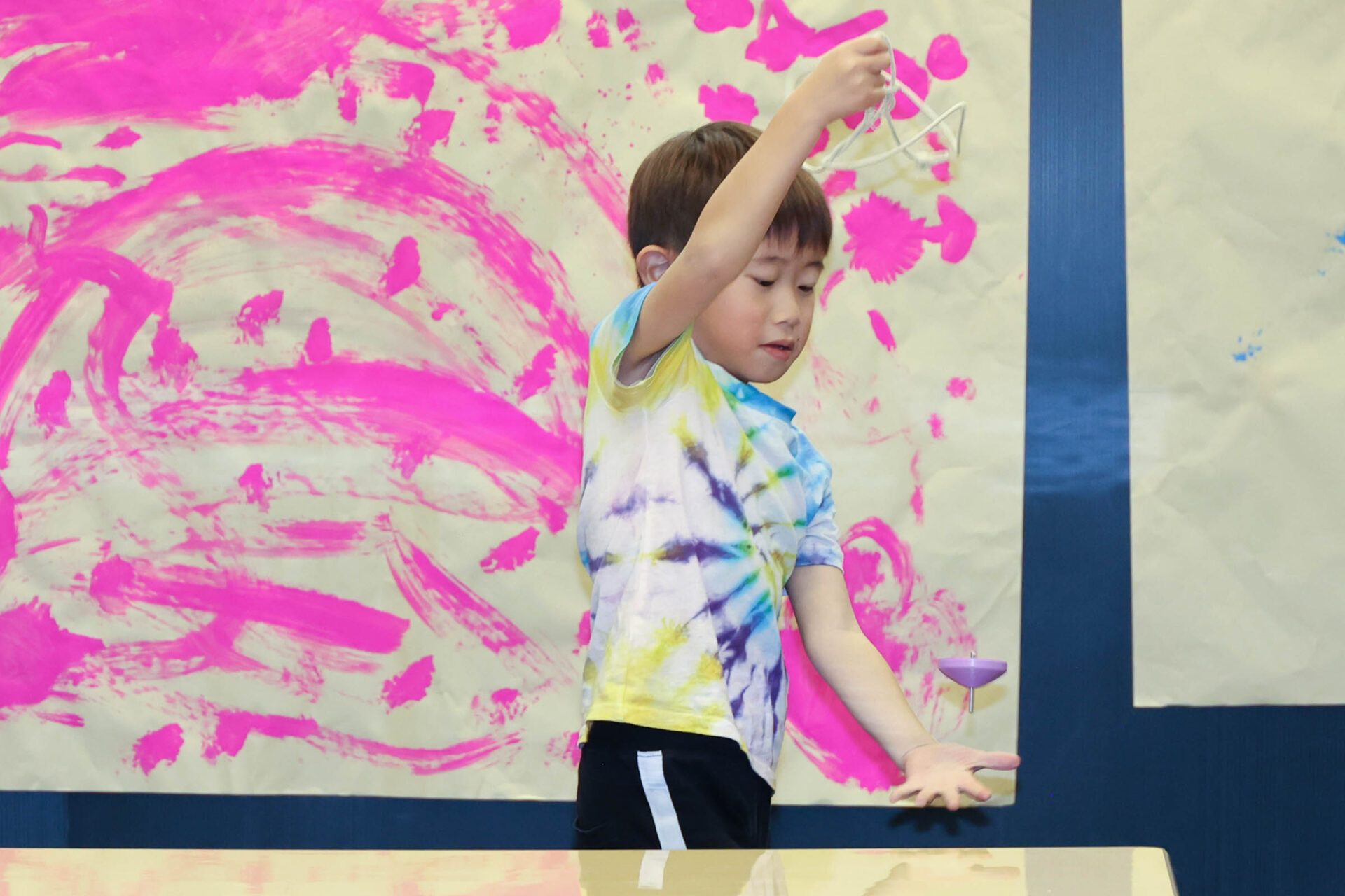 絵の具遊びや絵を描くことが好きなこどもたちが色遊びや描いた作品を紹介しました。