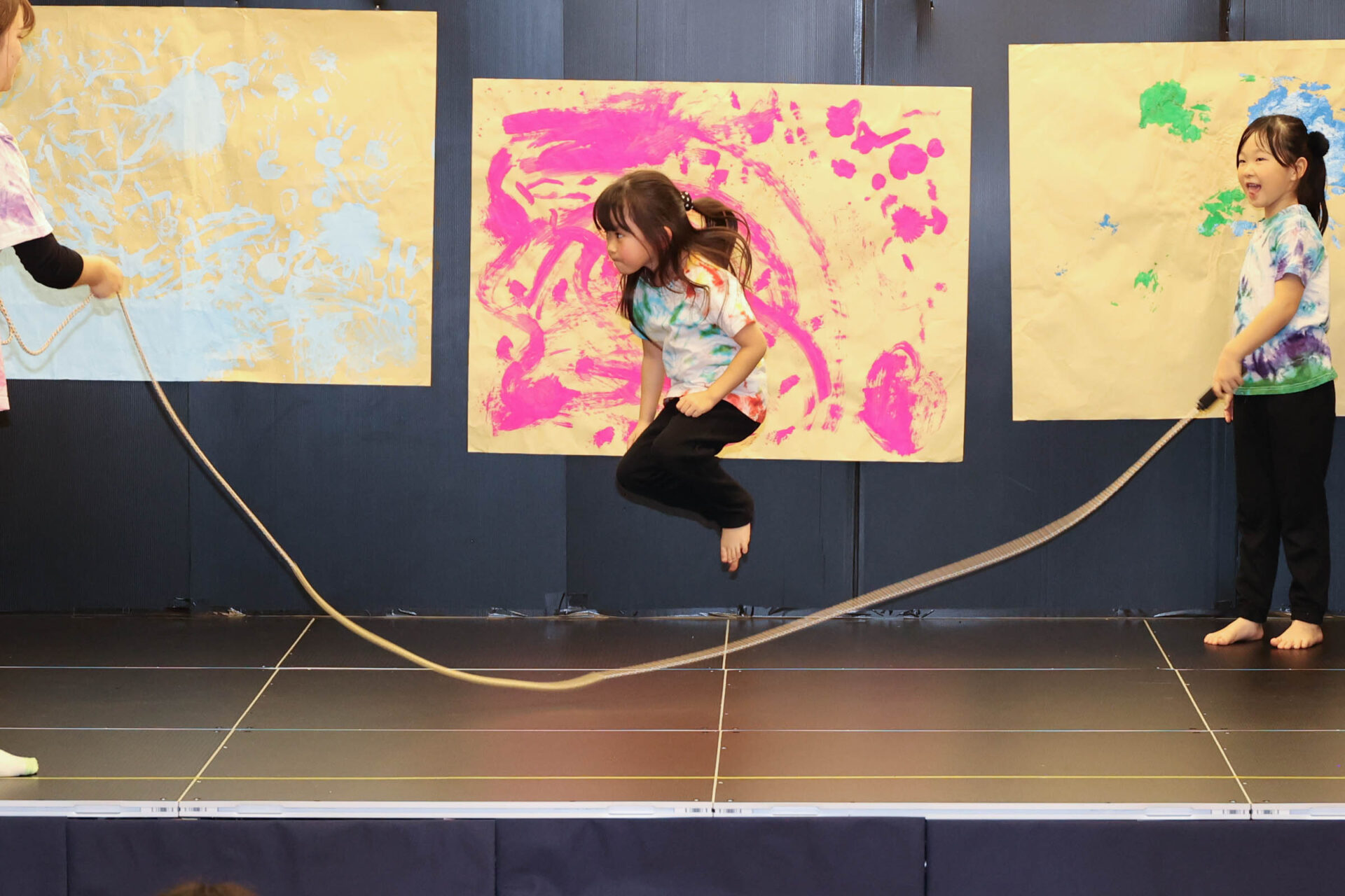 大繩跳びの縄回しもこどもたちが担当し、決めた回数を跳ぶ様子を披露しました。