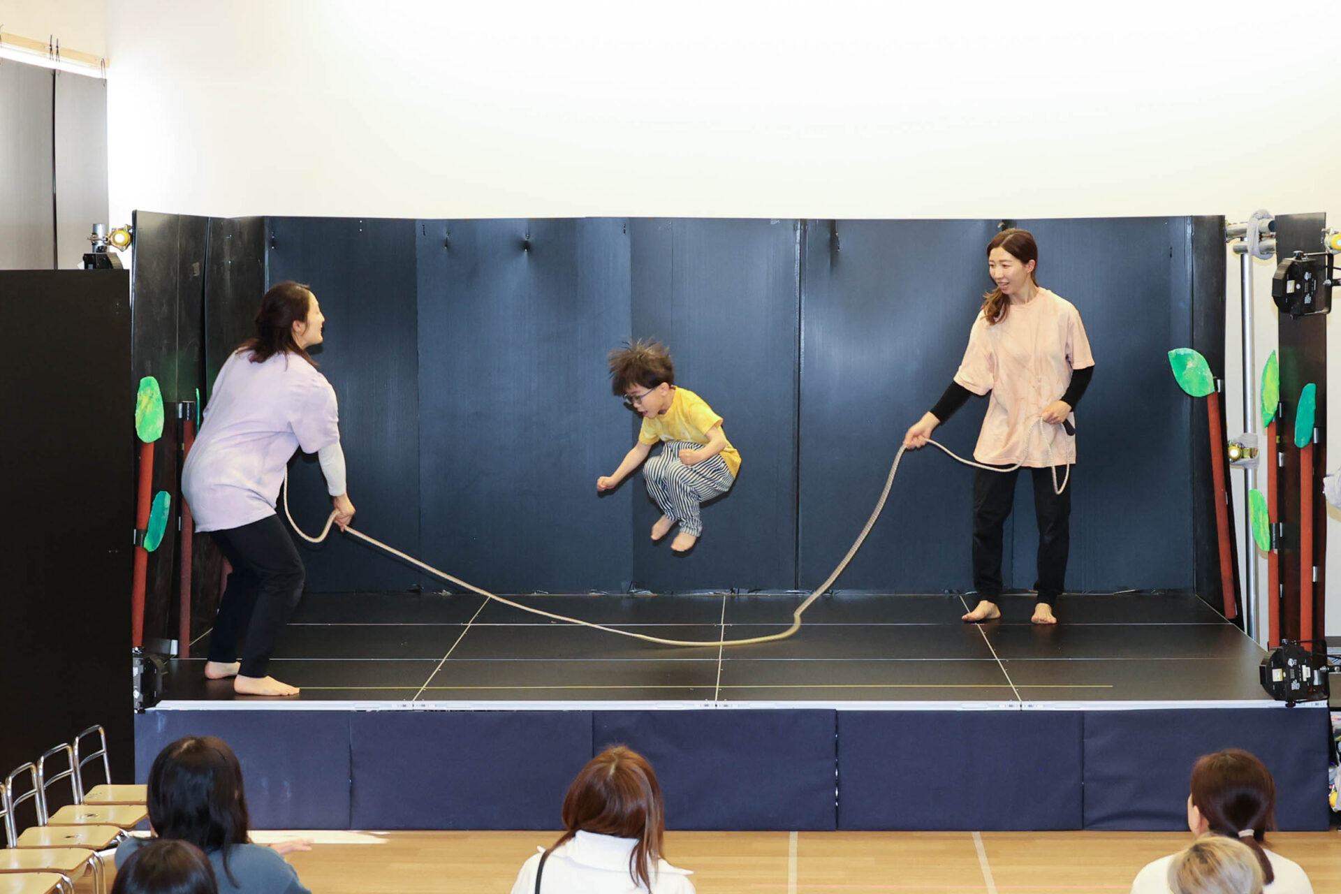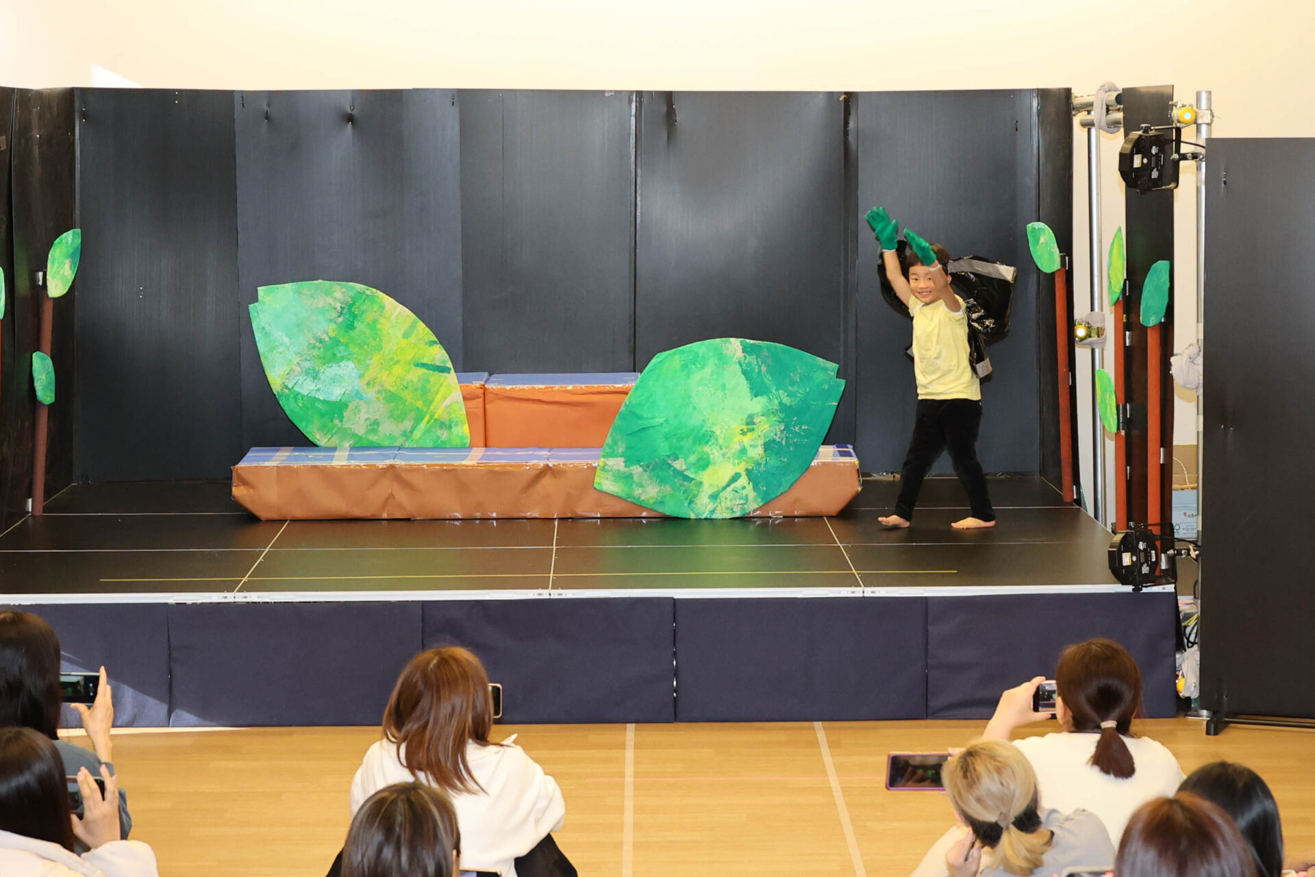 羽化した蝶が会場の後方から登場する場面では、こどもたちは思い思いの動きで羽化の喜びを表現しました。