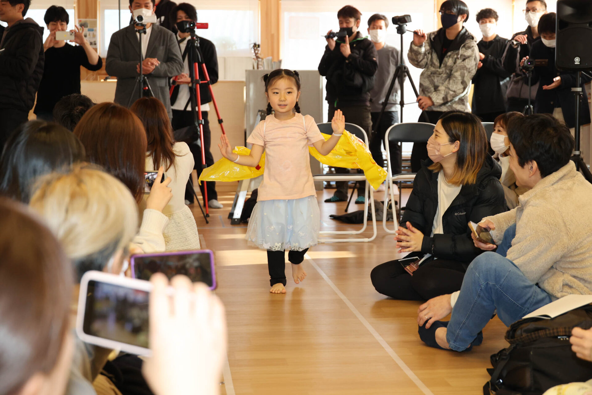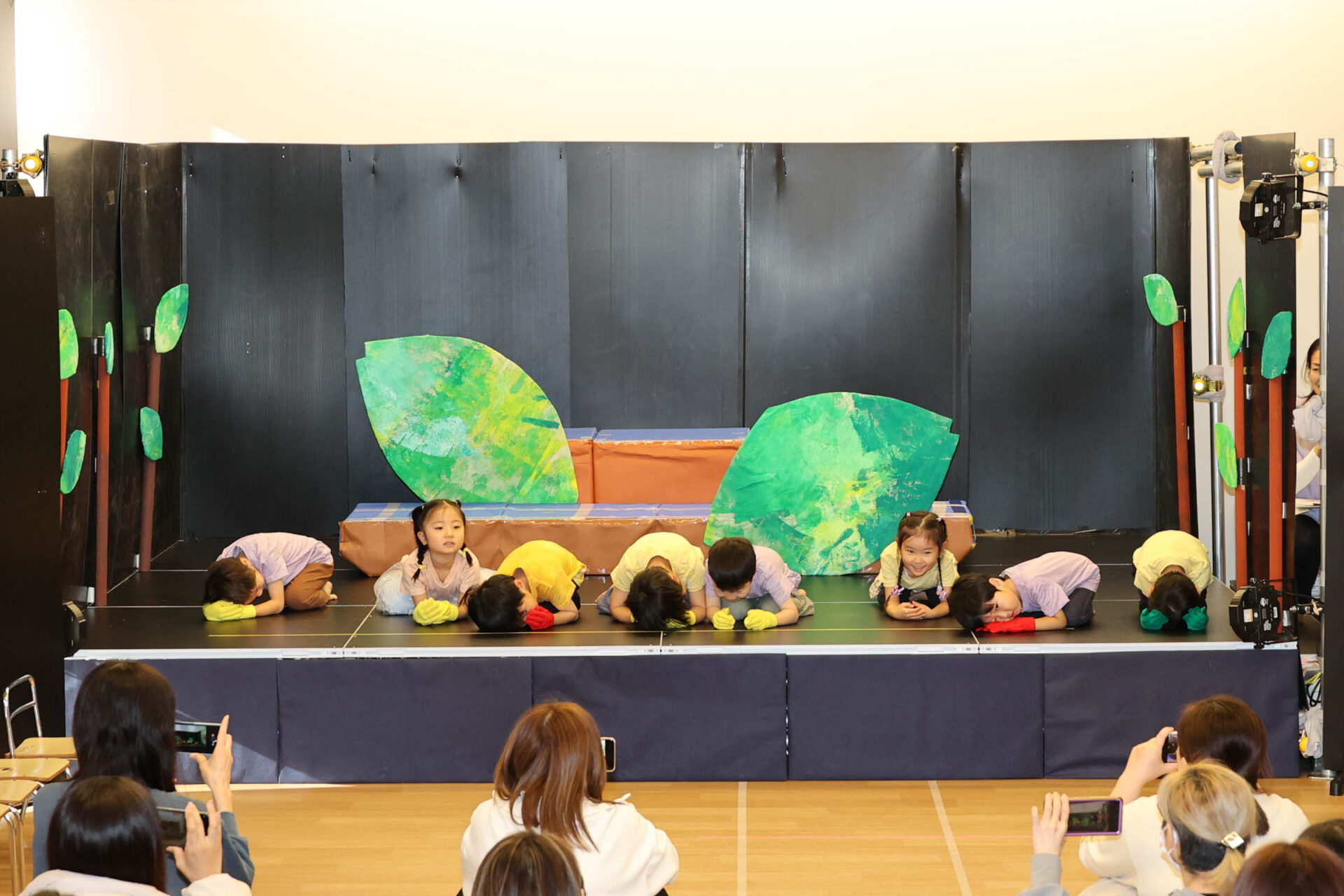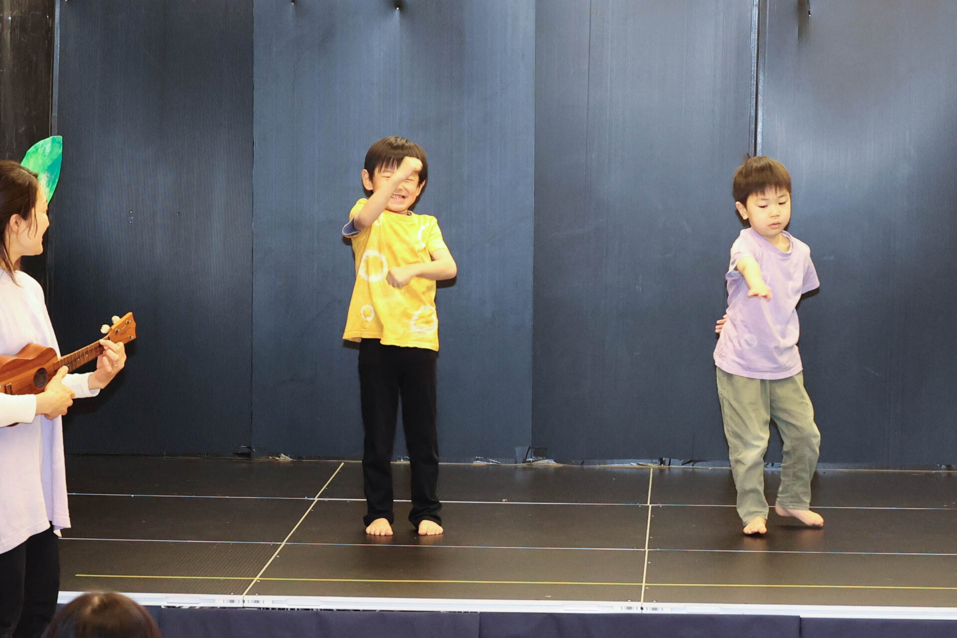 個性いっぱいの内容のなかでも、最後の歌とダンスはこどもたちが会場に入場し、普段、歌っている歌で手遊びやダンスしている様子を再現する形で表現しました。