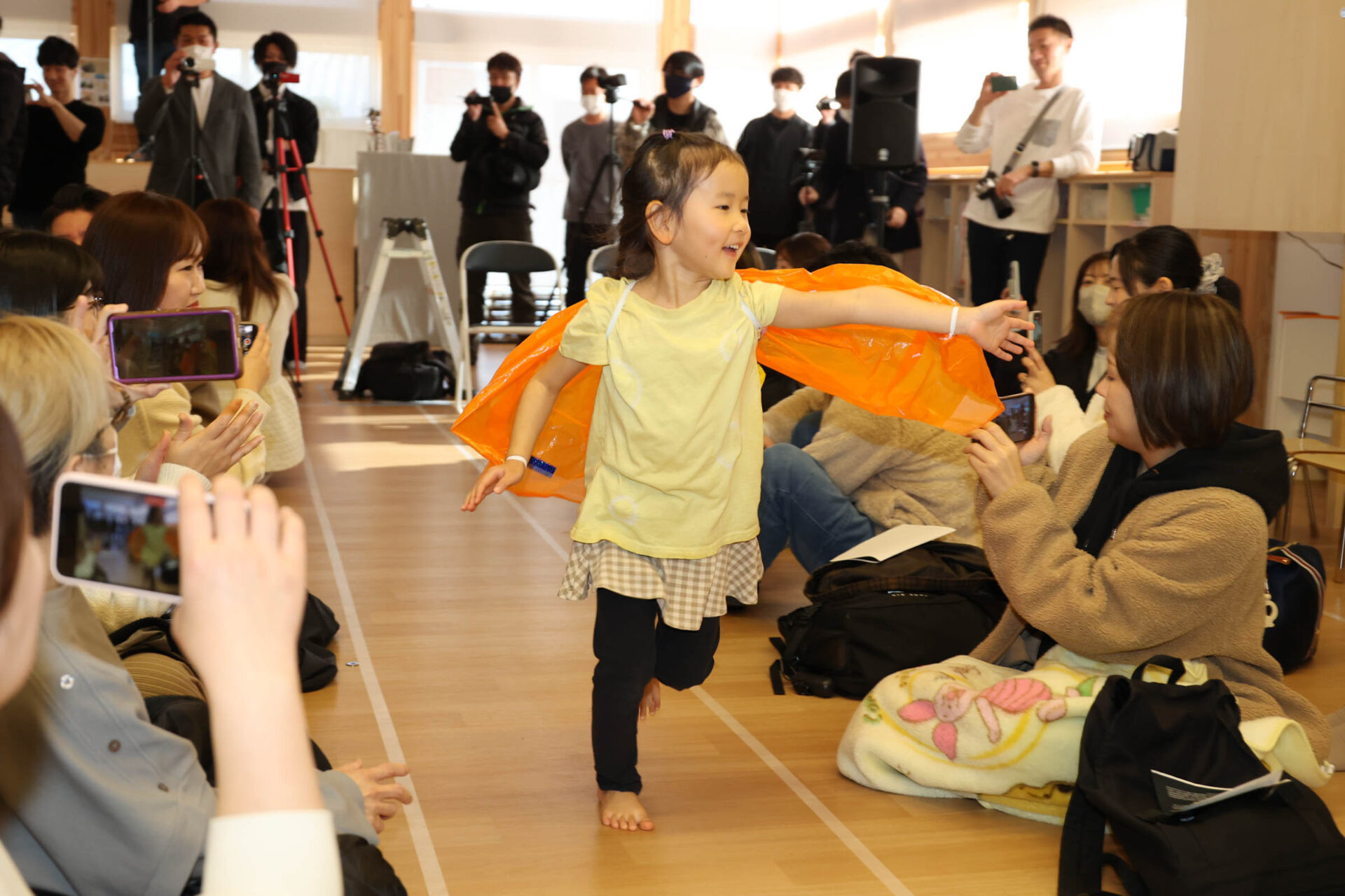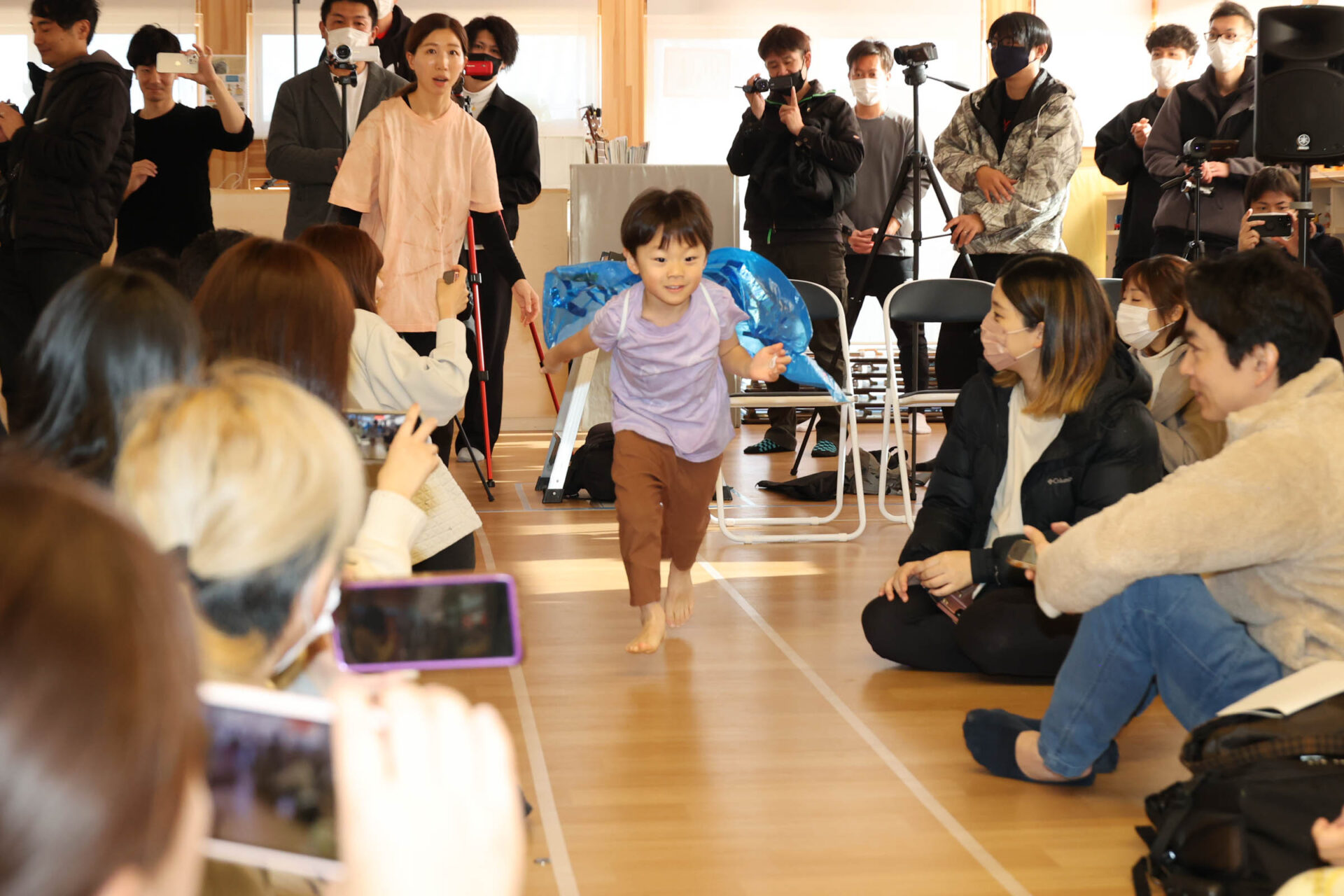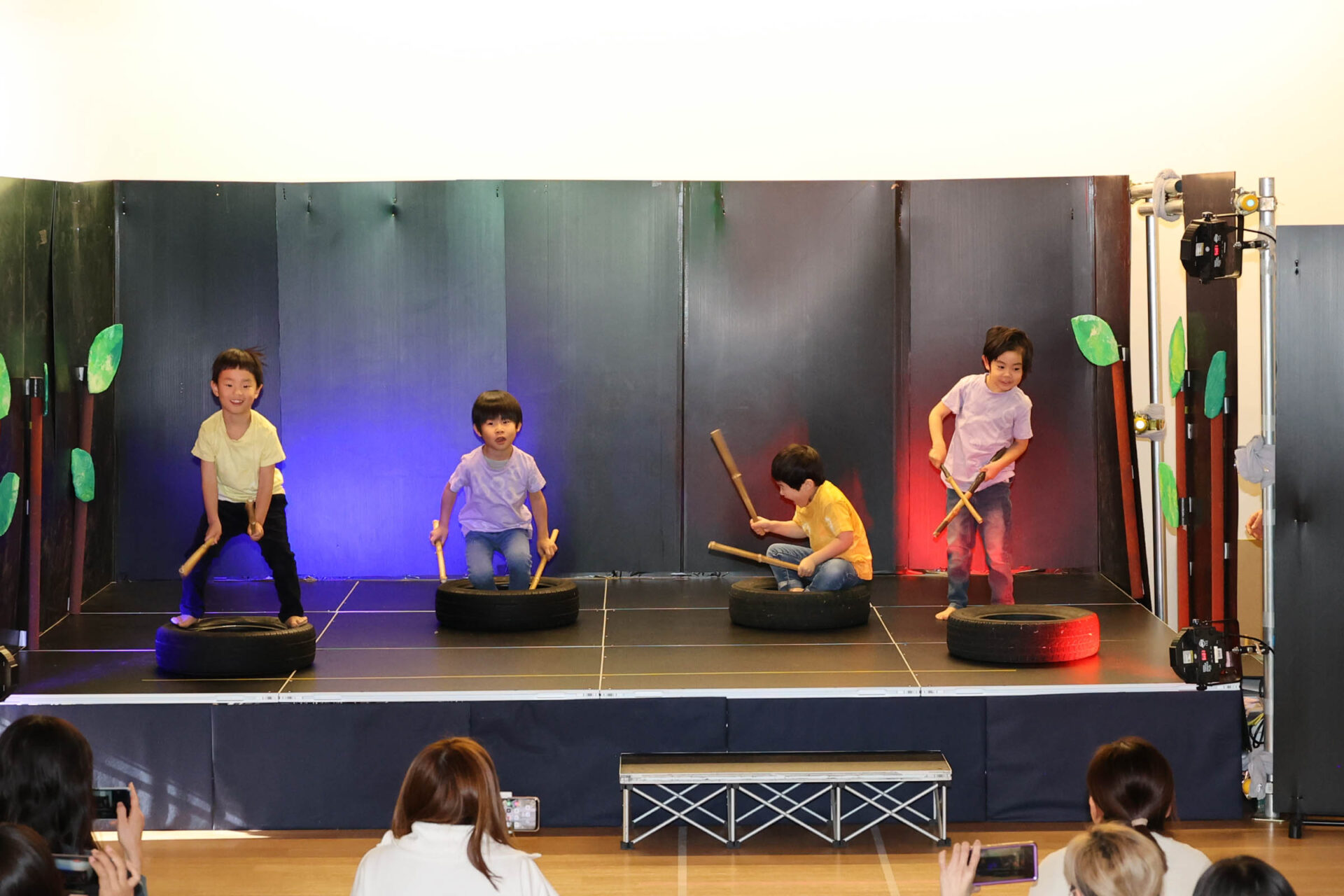 個性いっぱいの内容のなかでも、最後の歌とダンスはこどもたちが会場に入場し、普段、歌っている歌で手遊びやダンスしている様子を再現する形で表現しました。