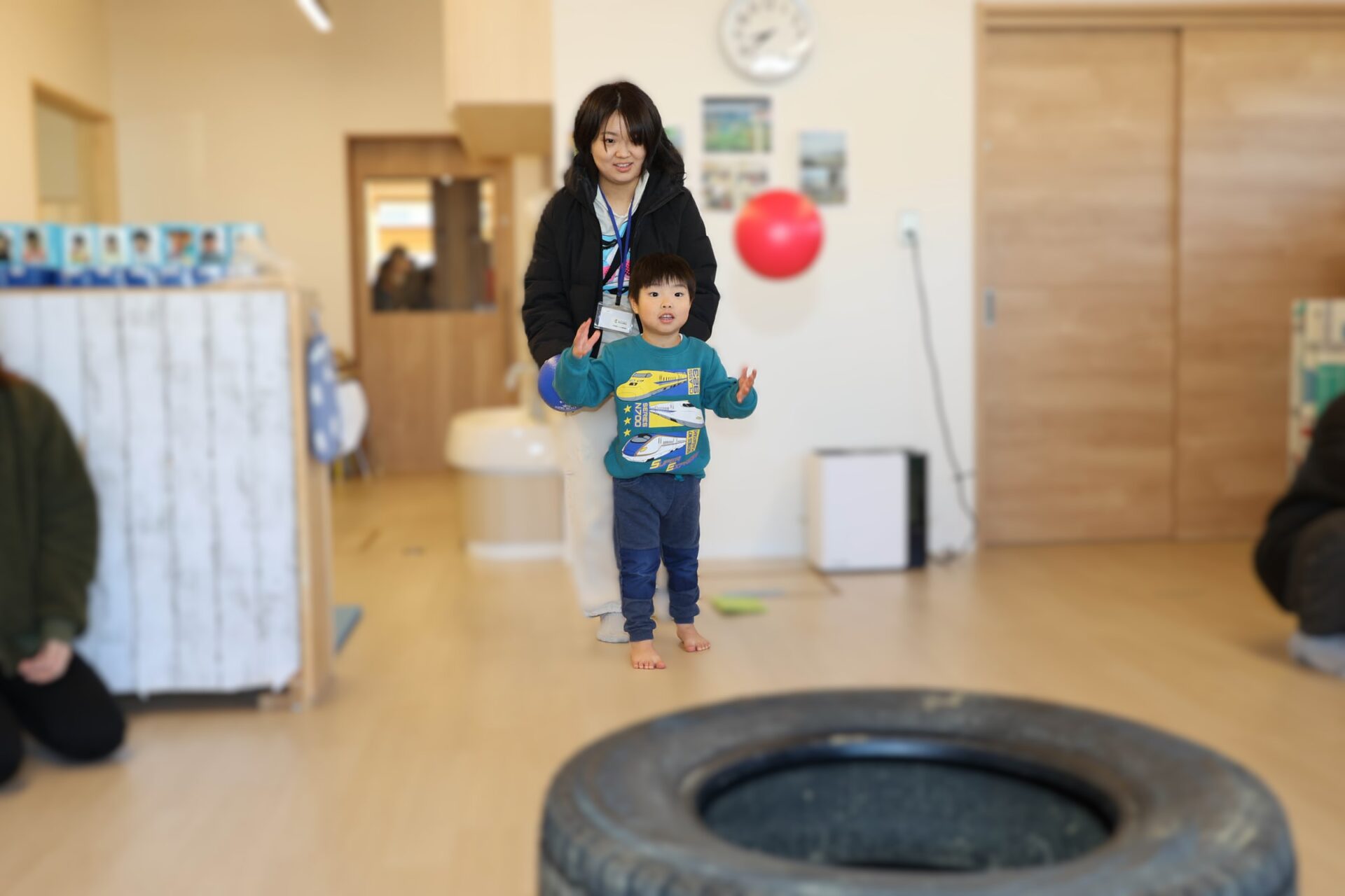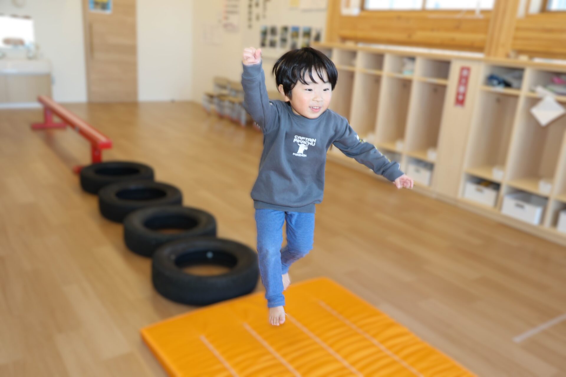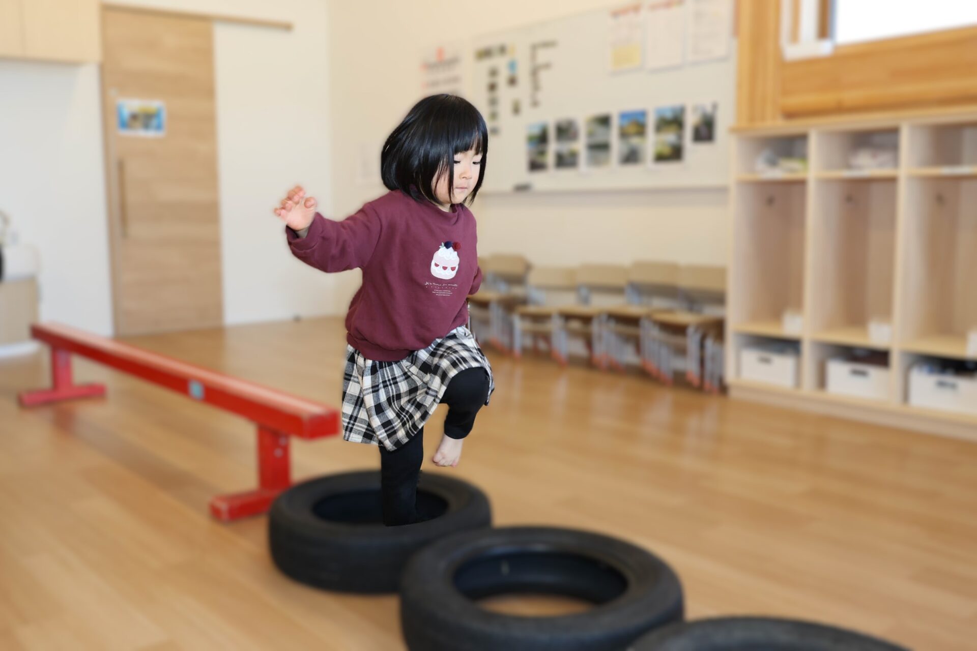 平均台とタイヤを並べたアスレチックコースに挑戦したり、
