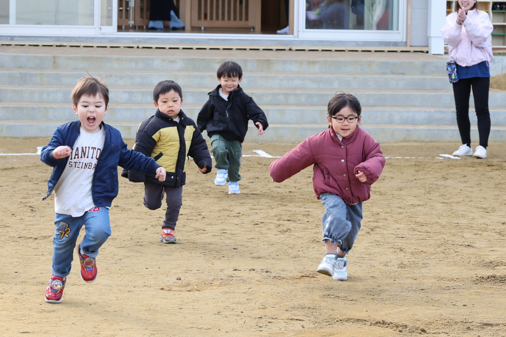 お家の方と一緒に遊んで楽しい時間を過ごしたことから、こどもたちは「頑張る姿を見てもらおう」と全力でかけっこを楽しんでいました。
