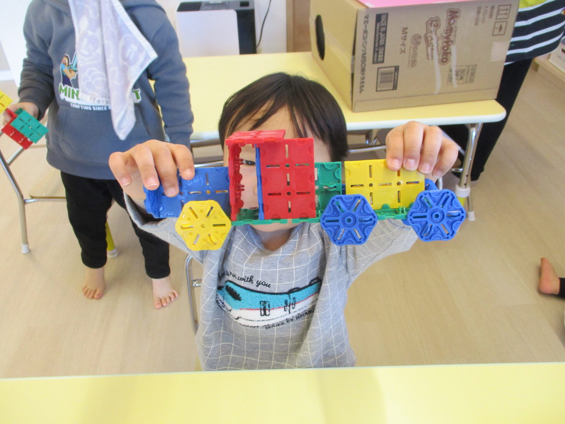 いろいろ形を組み合わせて、できた形をいろいろなものに見立てたり、作りたいと思ったものを作ったりなど、思い思いに表現することを一緒に楽しんでいきたいと思います。