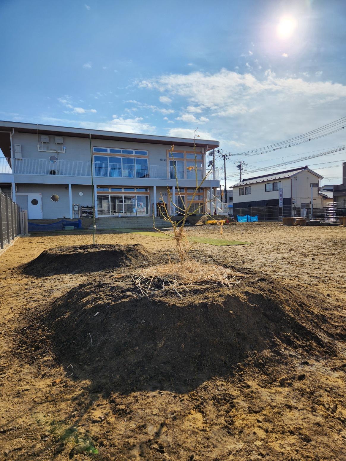 昨年、アゲハ蝶に来てほしいこどもたちの想いで購入し、卵や幼虫の観察をしてきたレモンの木も植樹式の時に一緒に植え替えしました。
