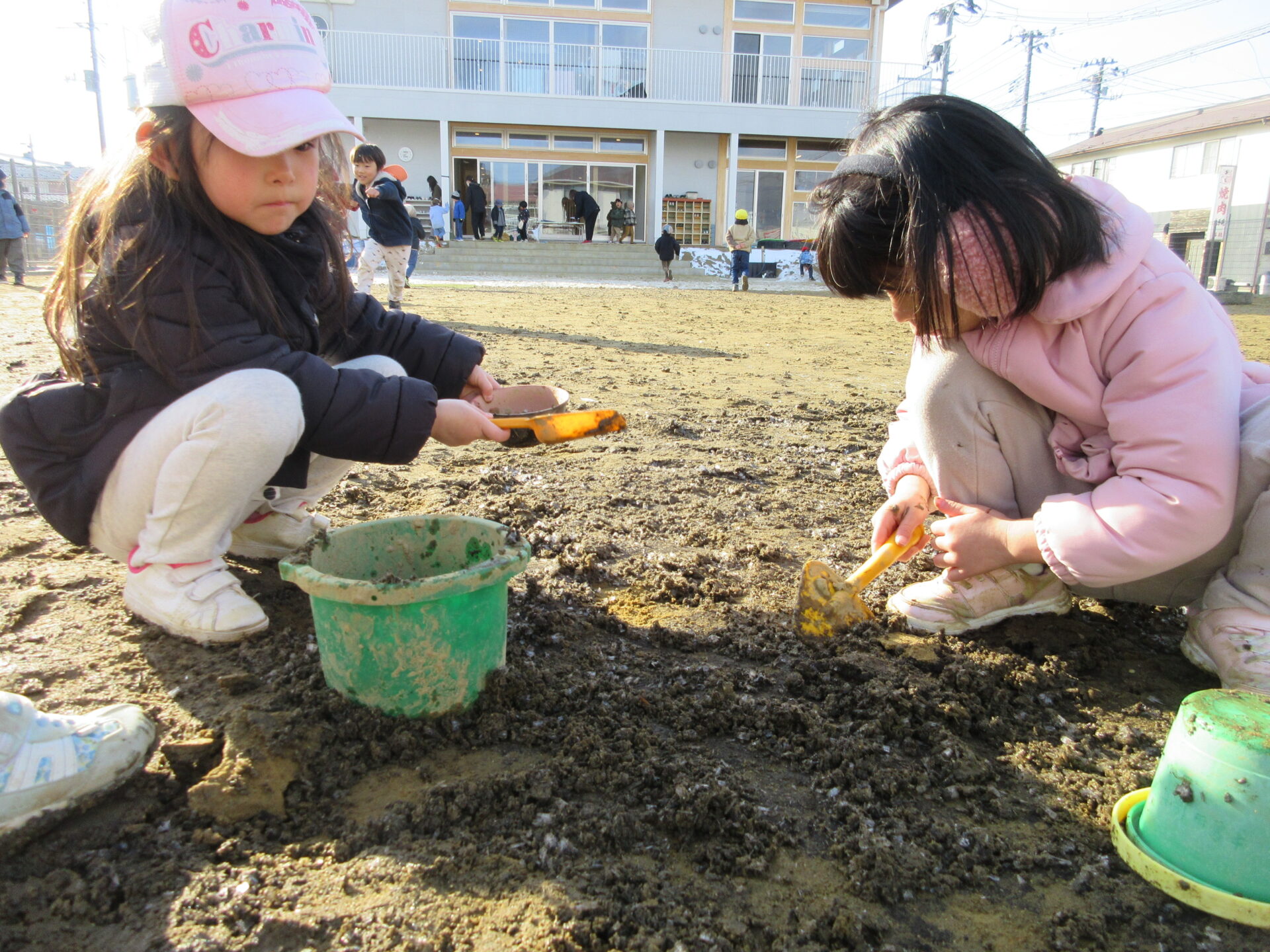 「水かな?」「砂かな?」「雪じゃない?」
