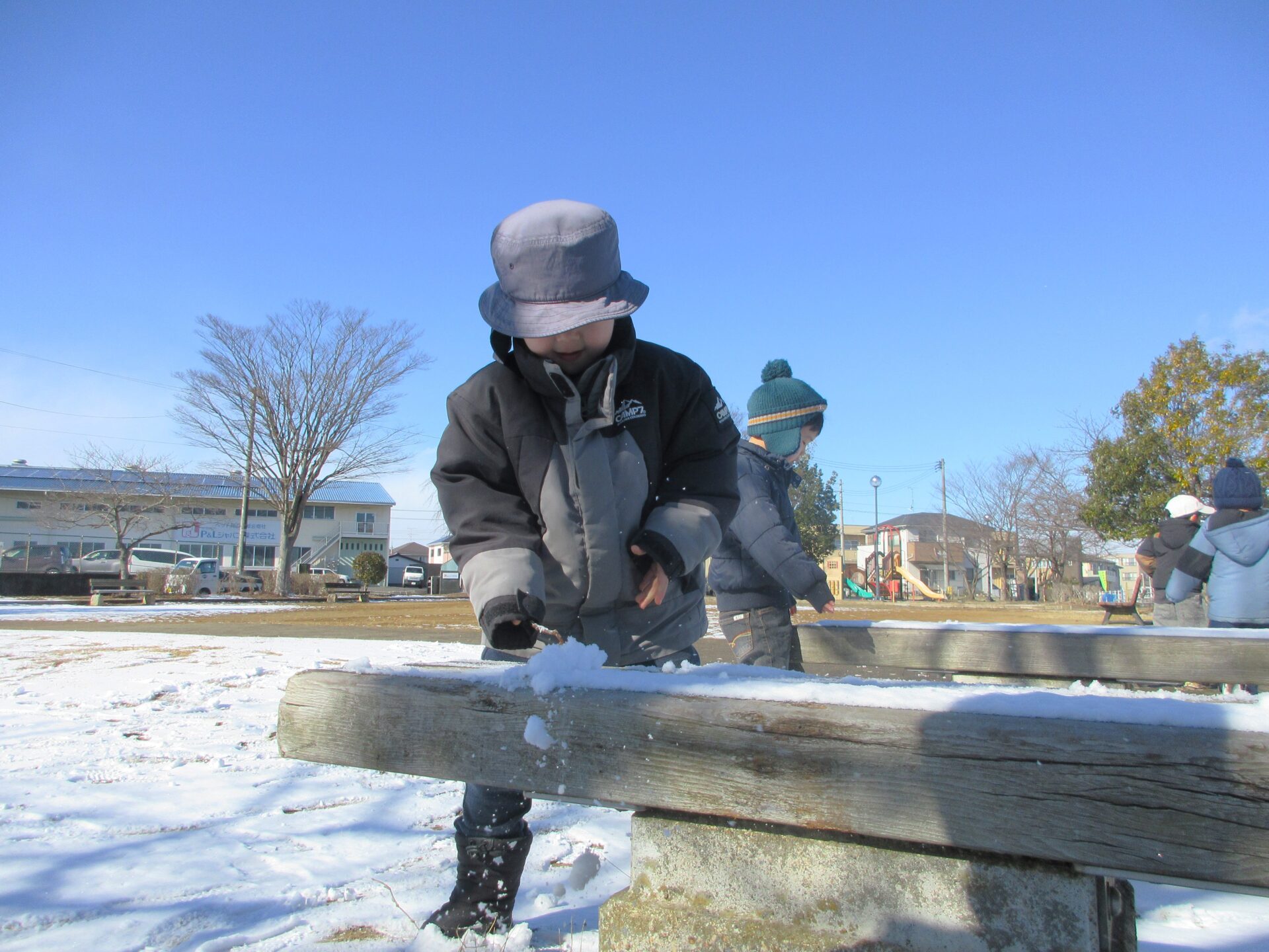 こどもたちからの「そり遊びしたい!」というリクエストで大手町2丁目公園に行ってきました。