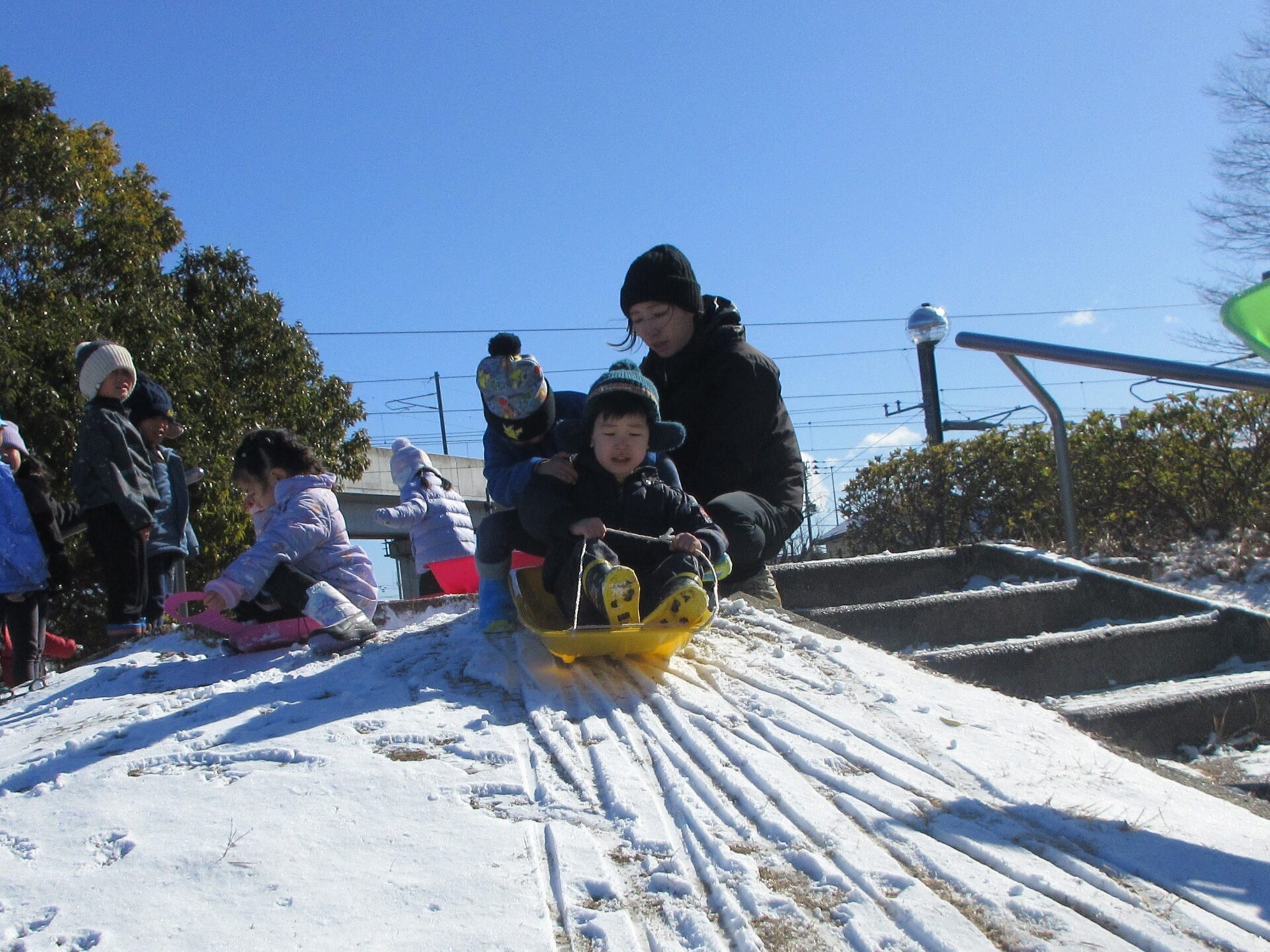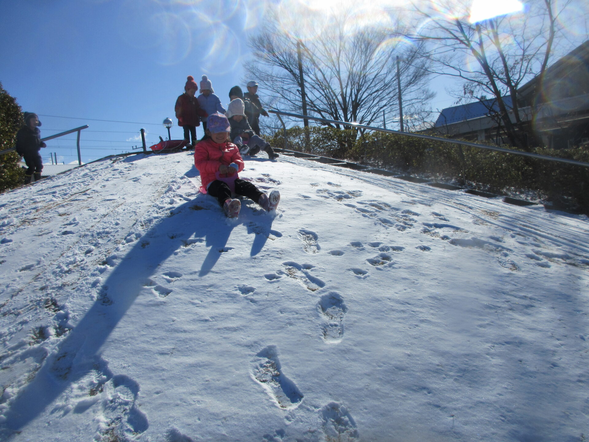 少しの積雪でも築山のお陰で思う存分、そり遊びを楽しむことができました。
