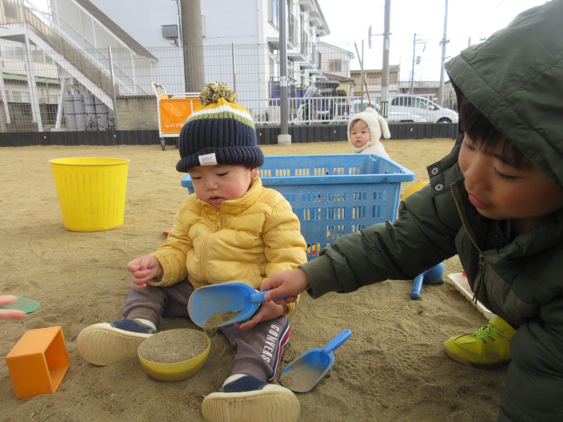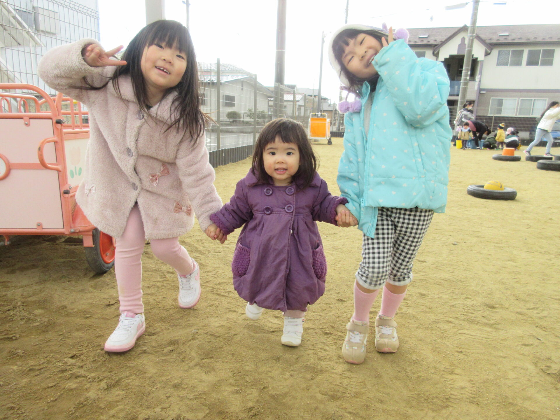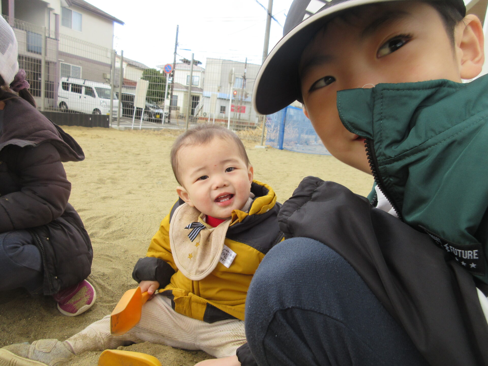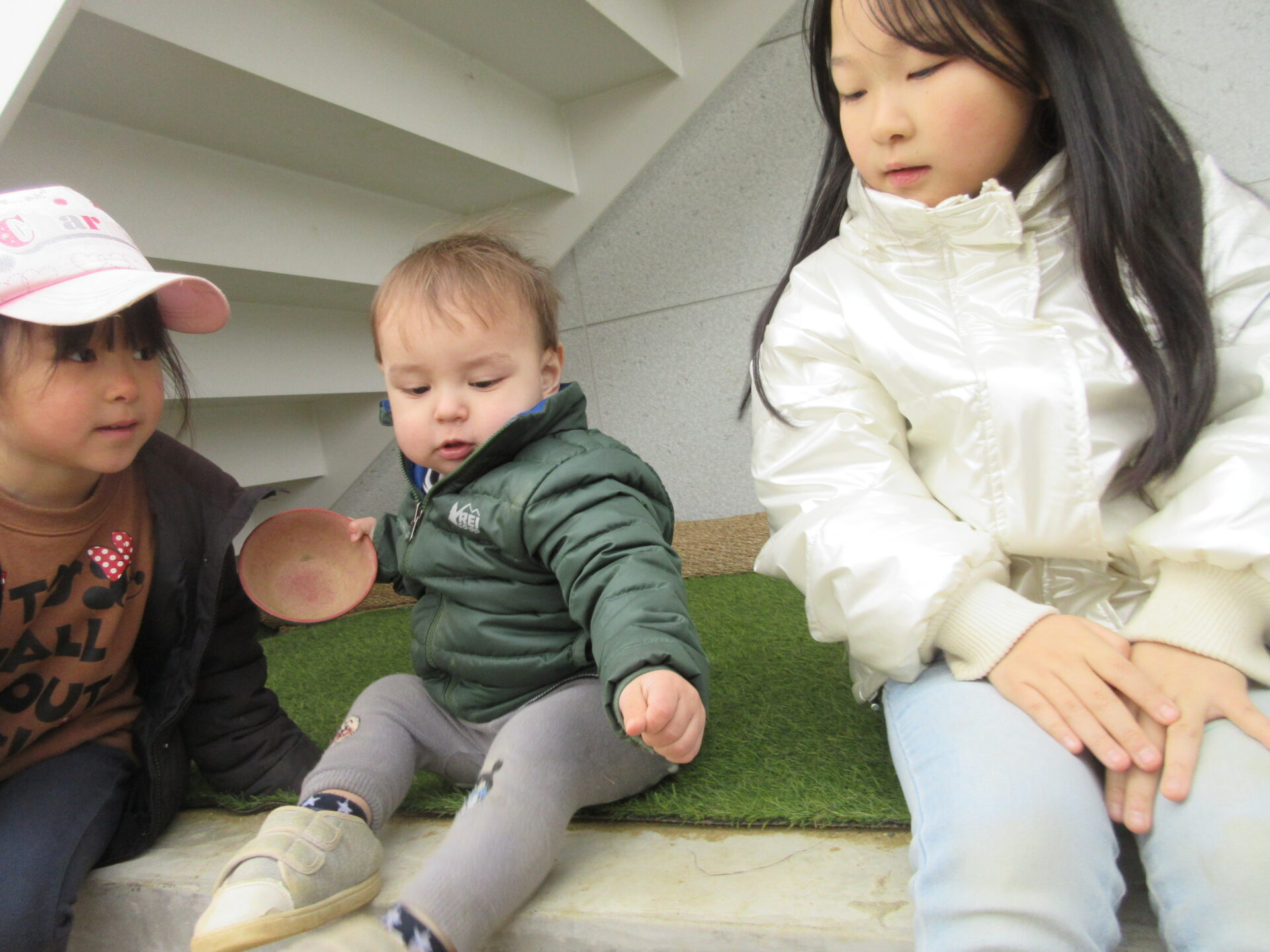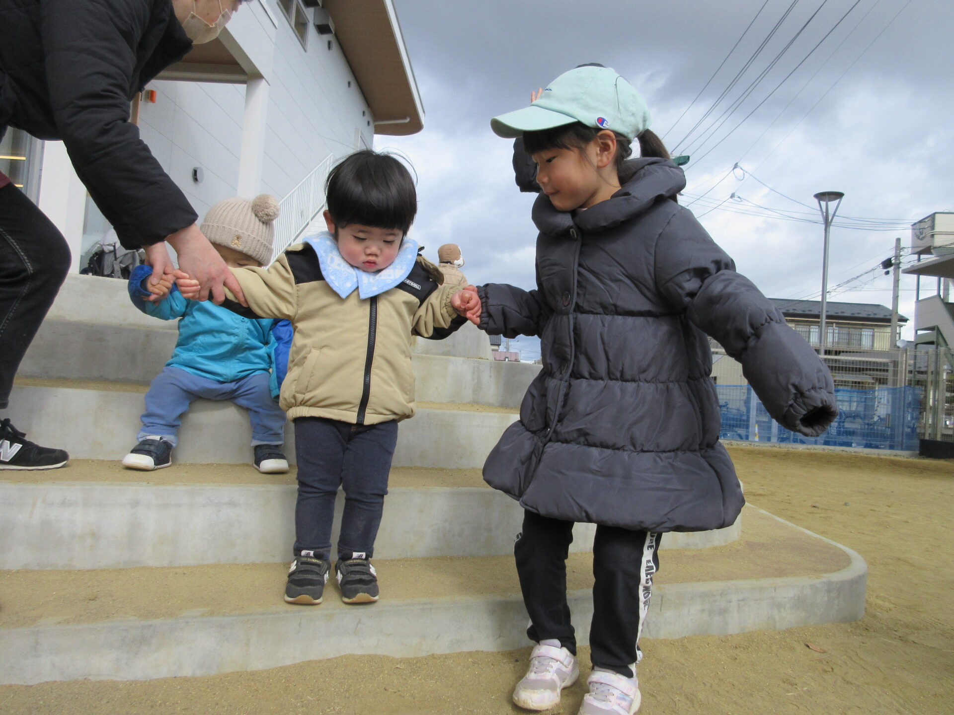 くじら組(5歳児)とうみ組(0歳児)のこどもたちが「一緒に遊ぼう!」と戸外遊びに出掛けました。