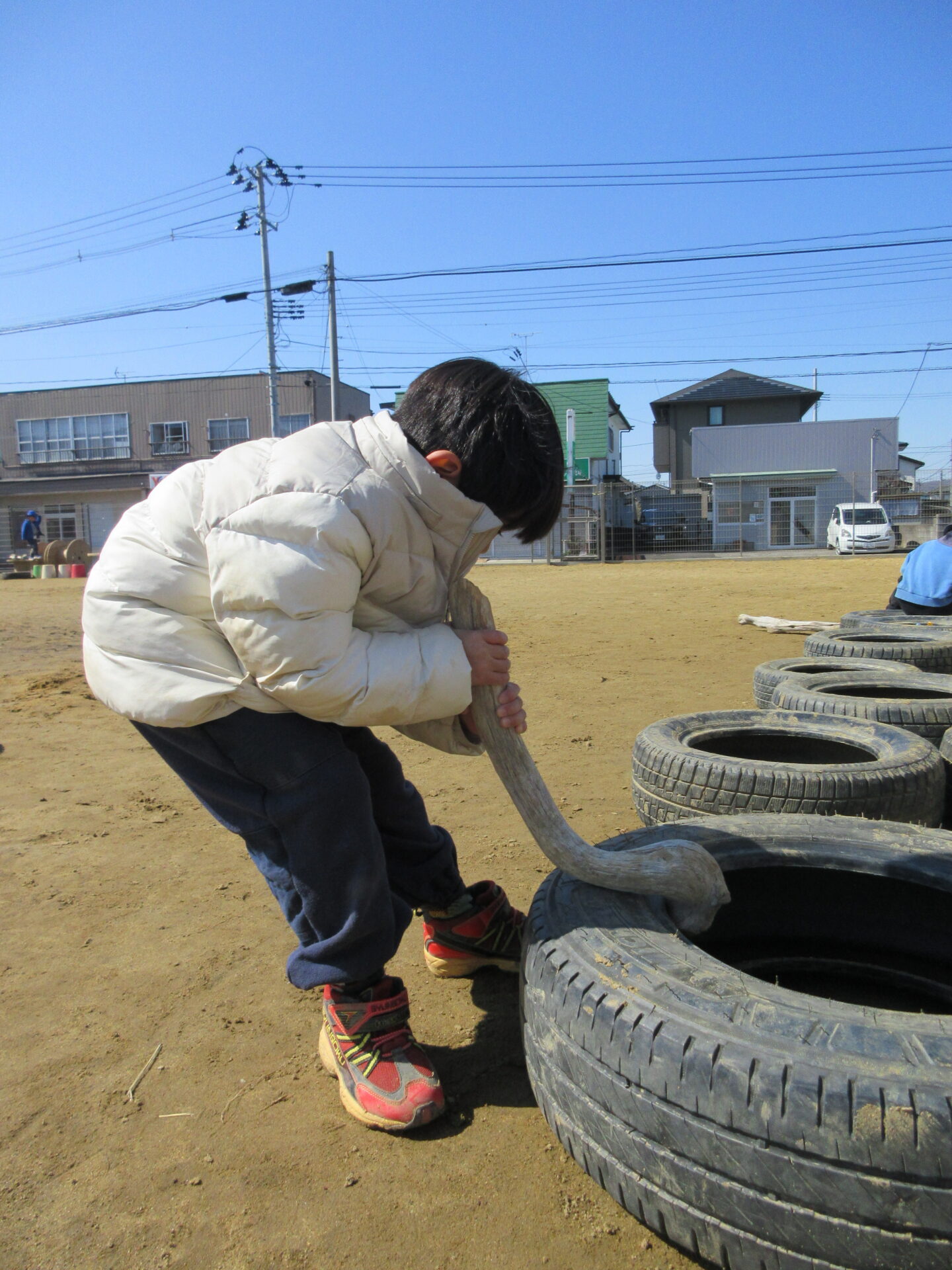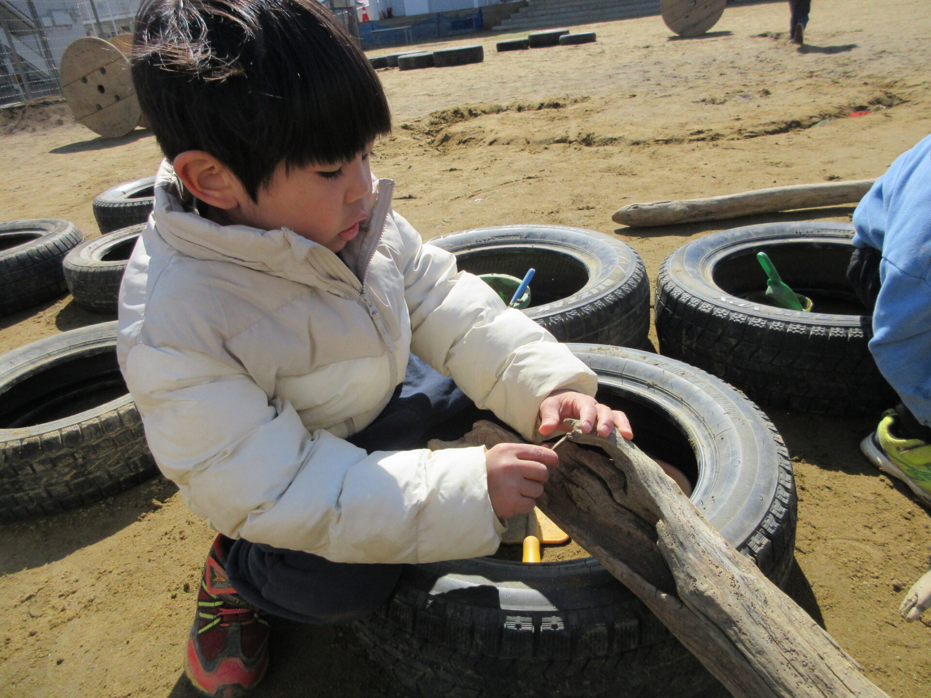 手倉田くじら保育園の園庭には、流木があります。