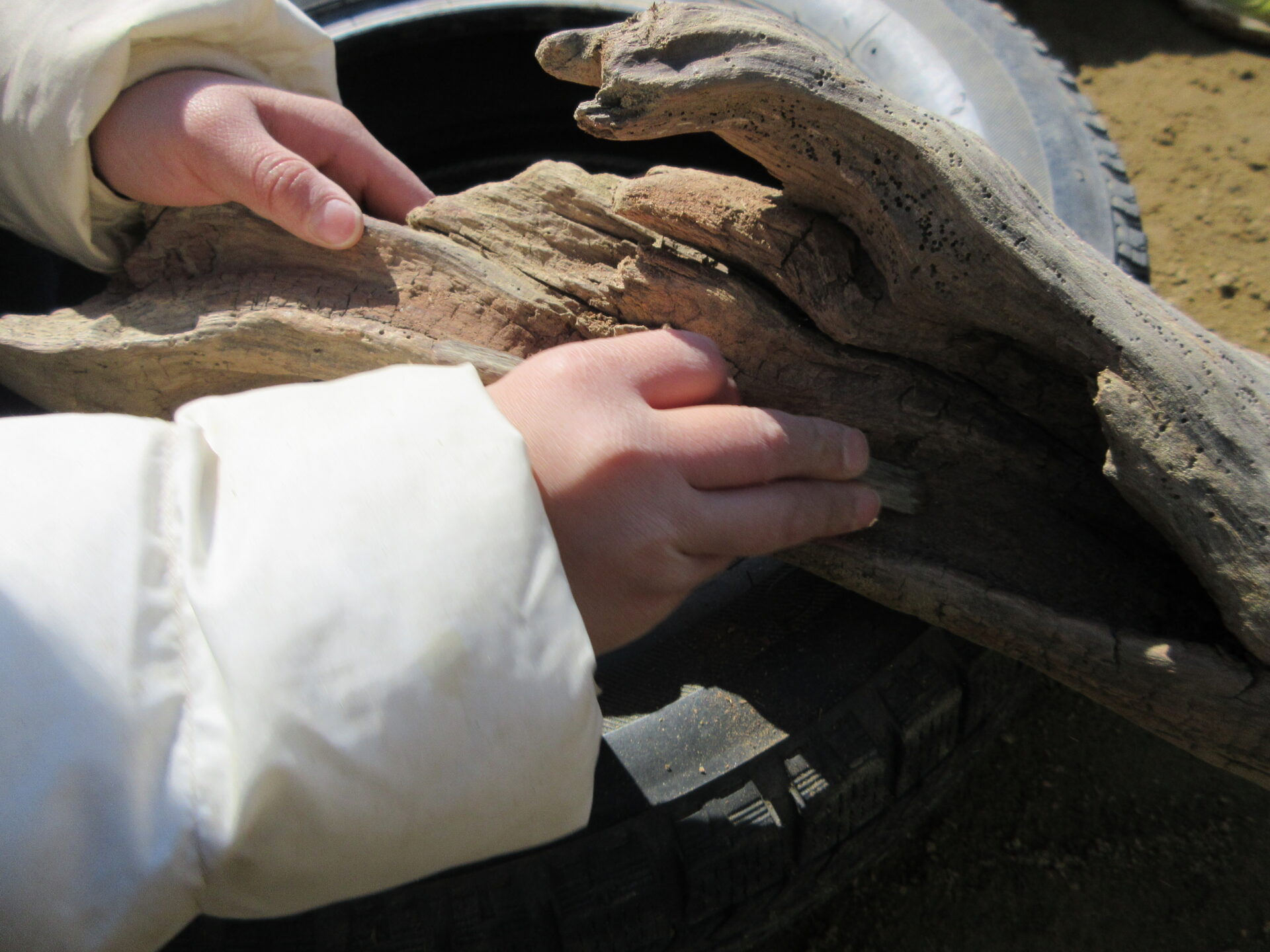 流木の秘密を発見したAさんは、このことを保育士に嬉しそうに教えてくれました。