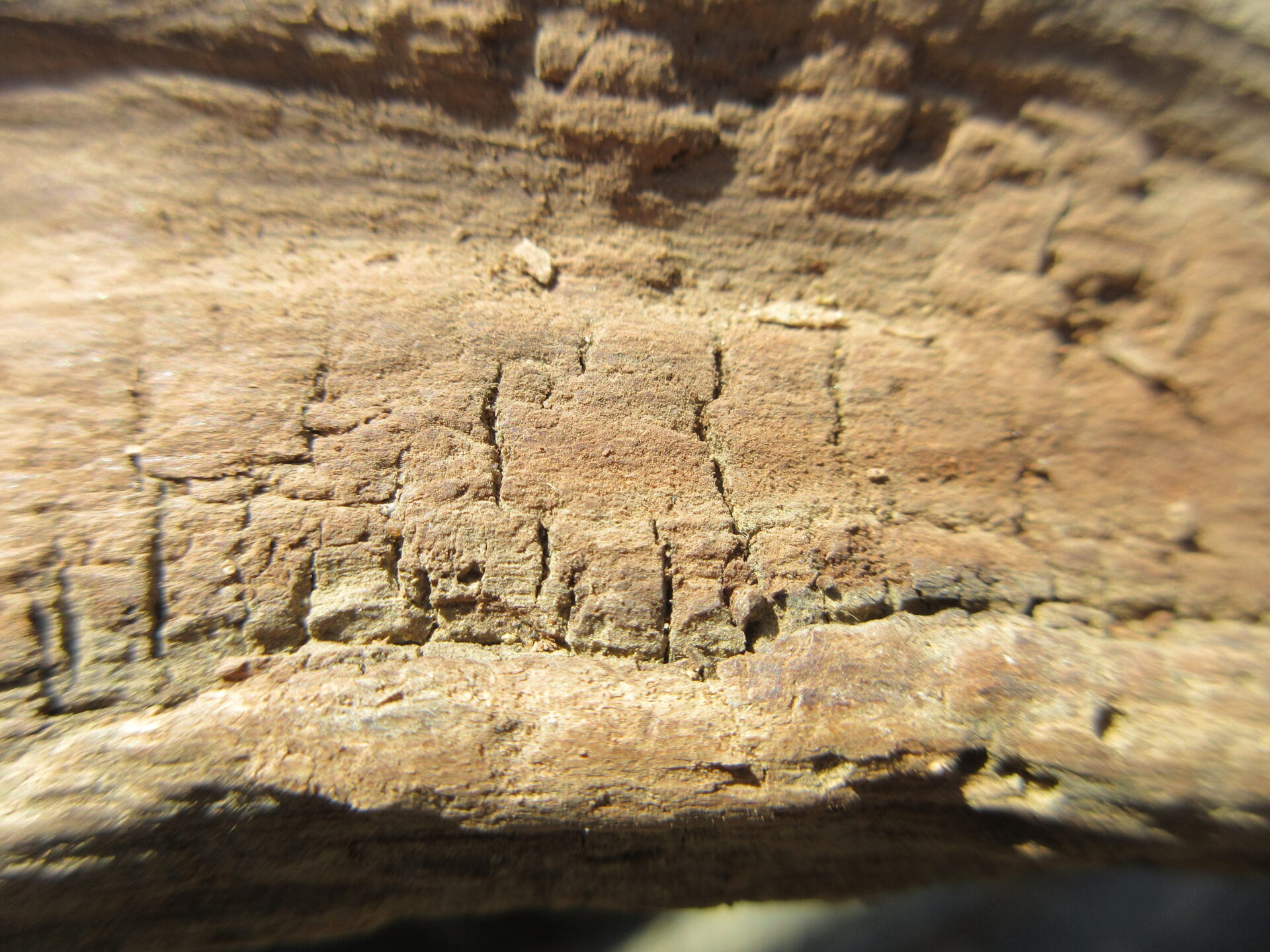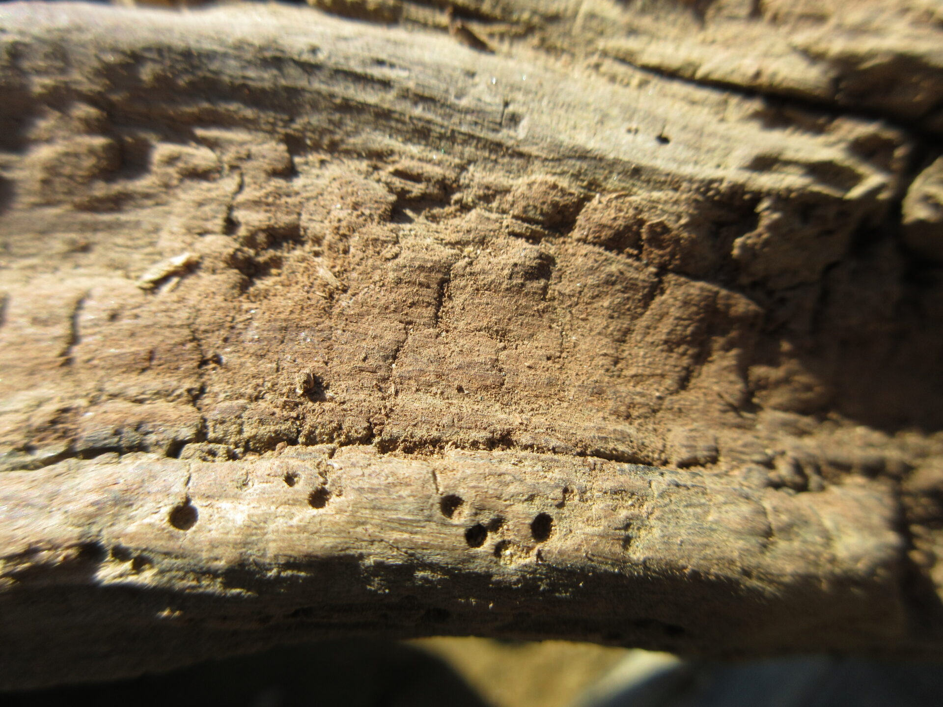 小さな木片で大きな流木の表面を削っていくと…