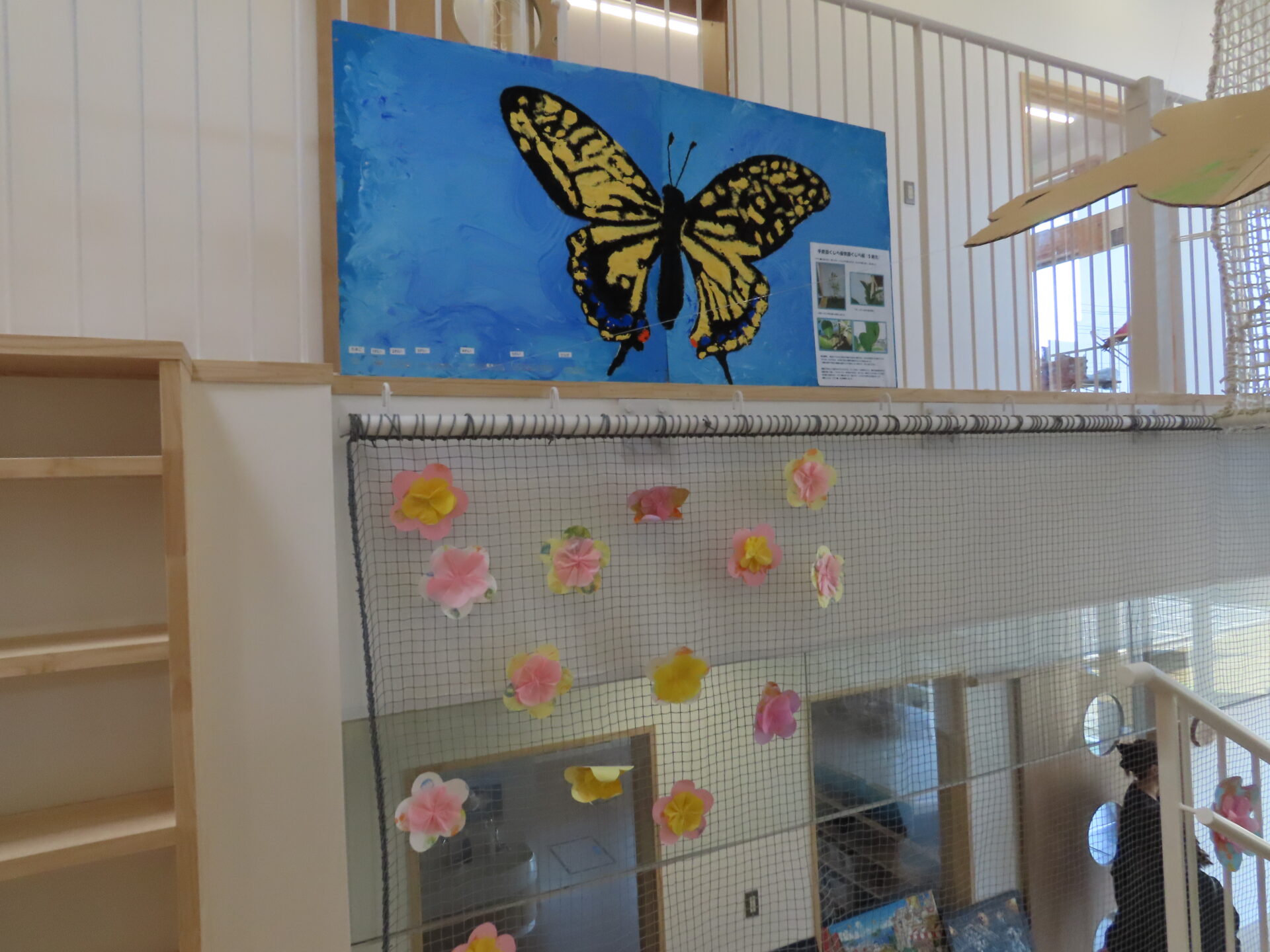 くじら組(5歳児)の卒園式の装飾は、0~4歳児のこどもたちがクラス毎に楽しんだ遊びから制作しました。