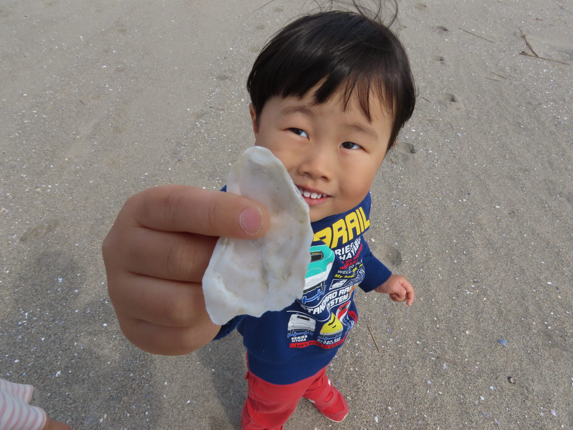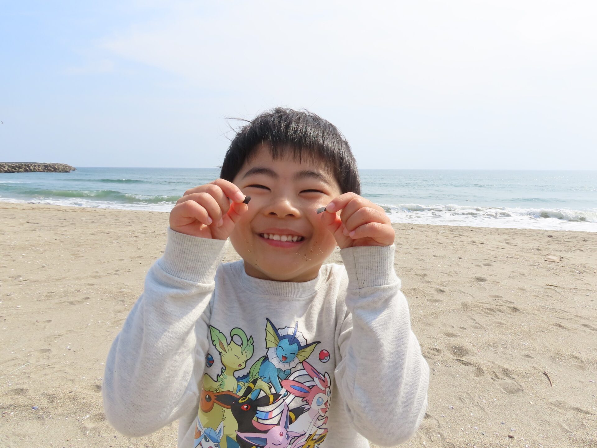 砂浜で見つけた貝殻を嬉しそうに見せたり、思い思いに楽しみました。