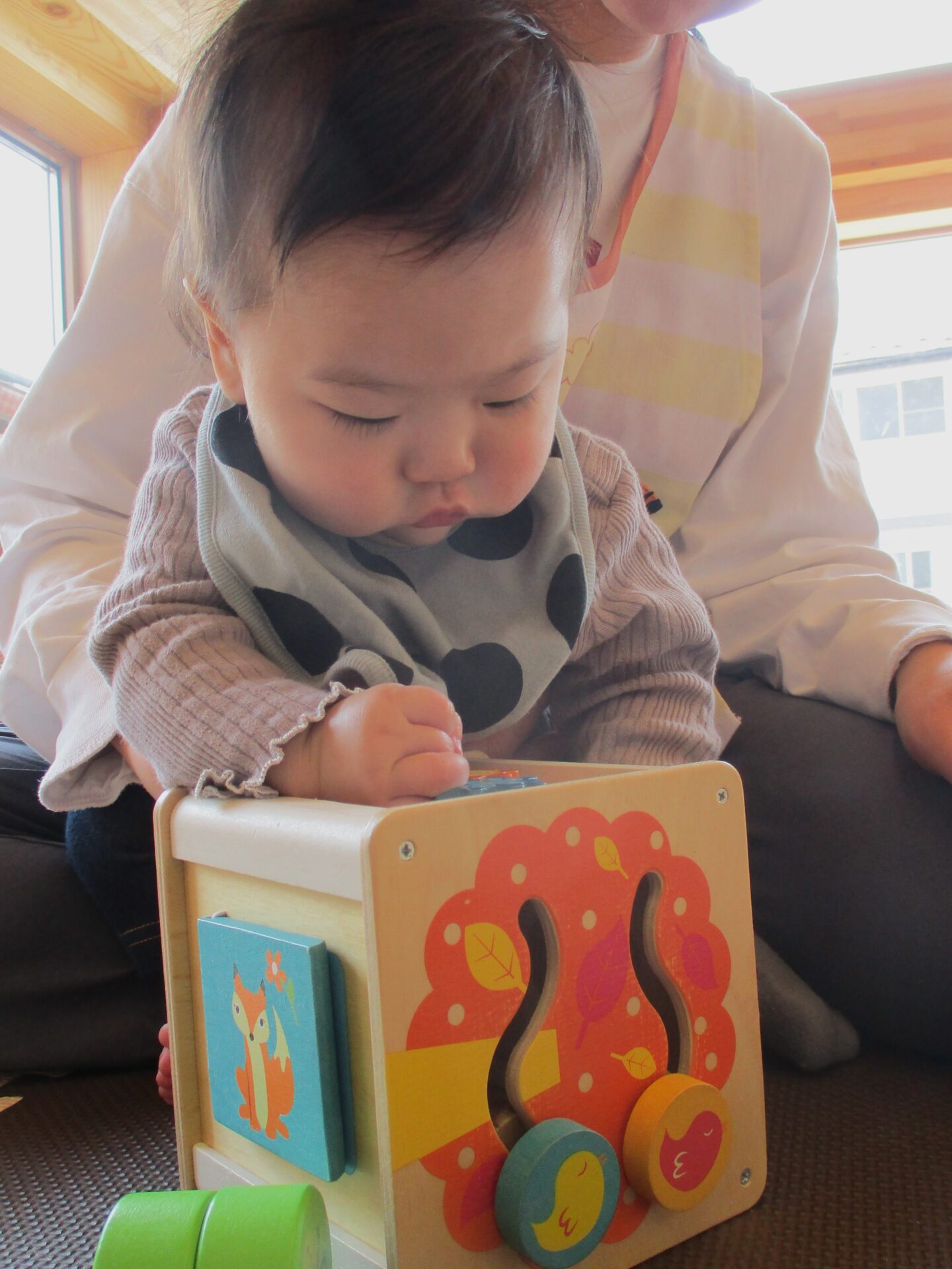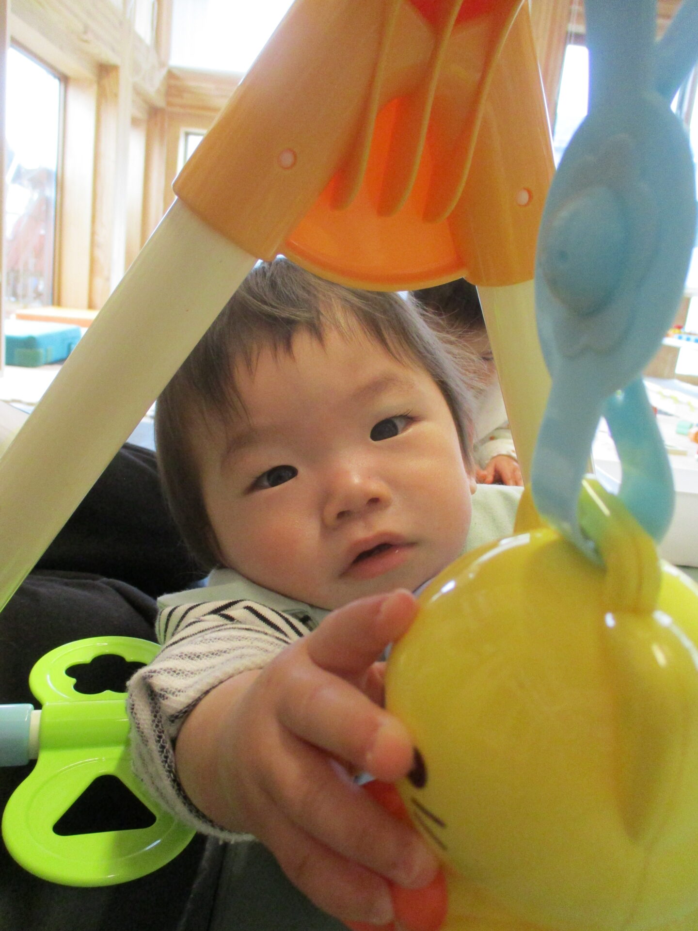 安心できる担任保育者とのやり取りを通して、興味のあるものに手を伸ばしてみたり…