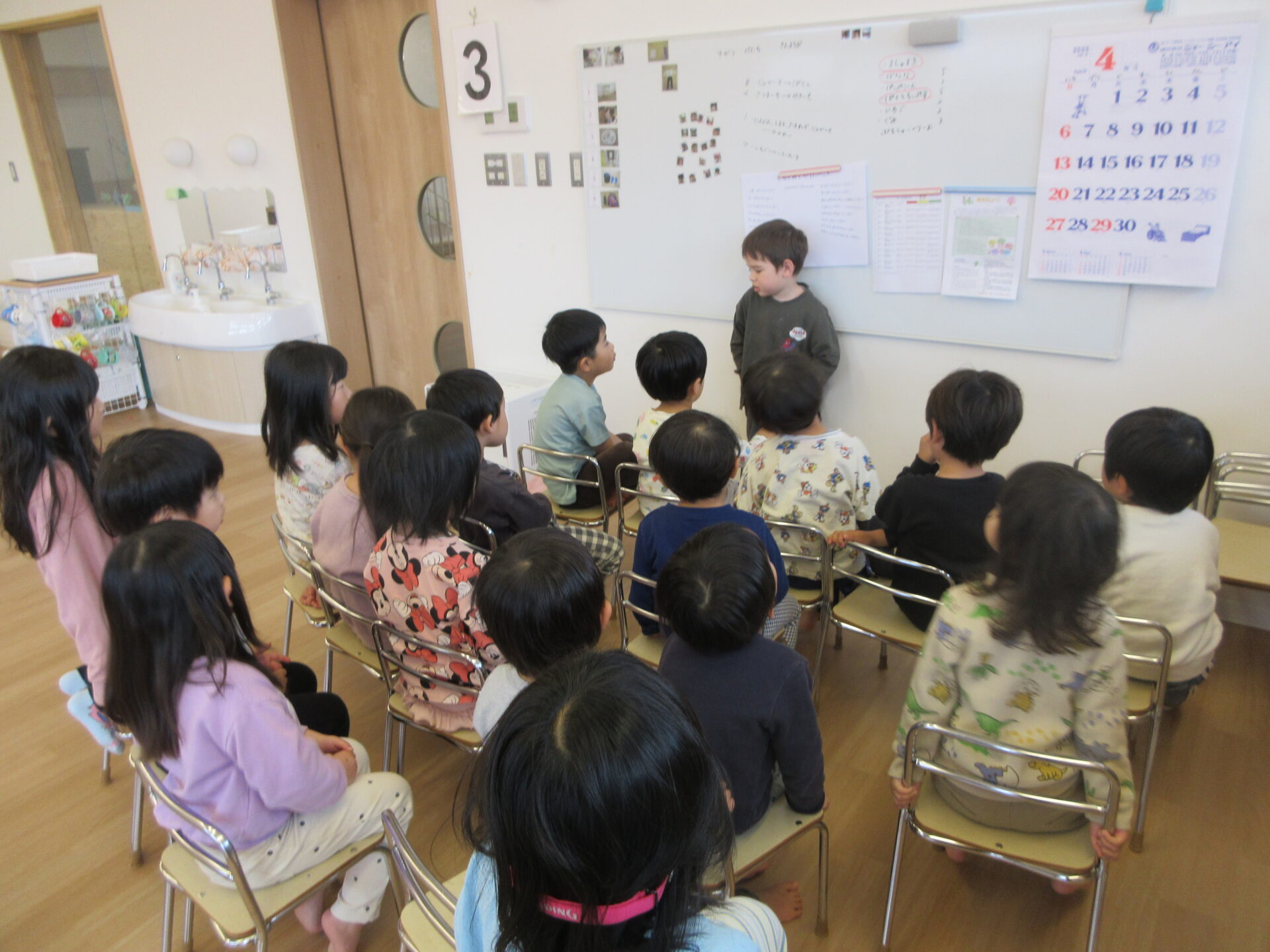 やりたいこと、やってみたいことをどうしていくかなどを、こどもたちが話し合う「こども会議」では、こどもたち一人ひとりが自分の想いを伝えること、友だちの想いを聞くことを大切にしています。