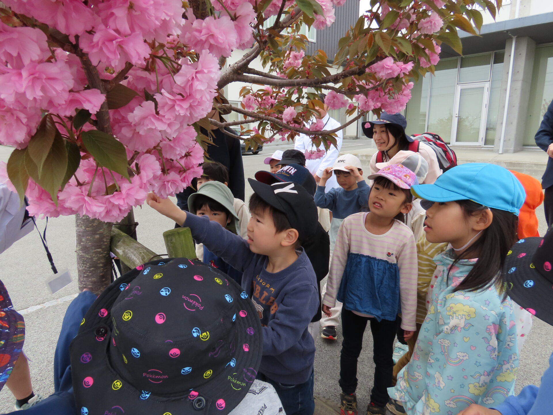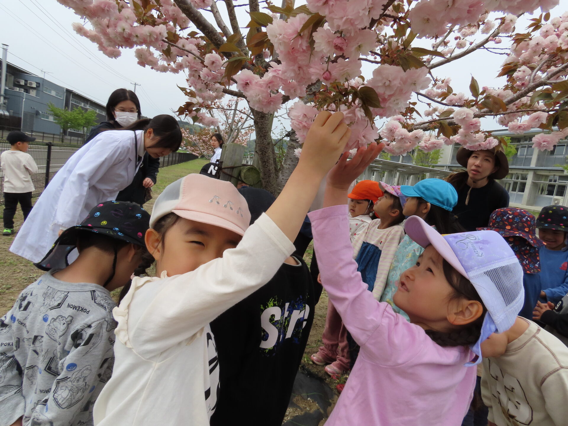 間近で見る桜の花びらに興味津々のこどもたちに「触って見てもいいよ」と声をかけていただき、じっくり観察してきました。