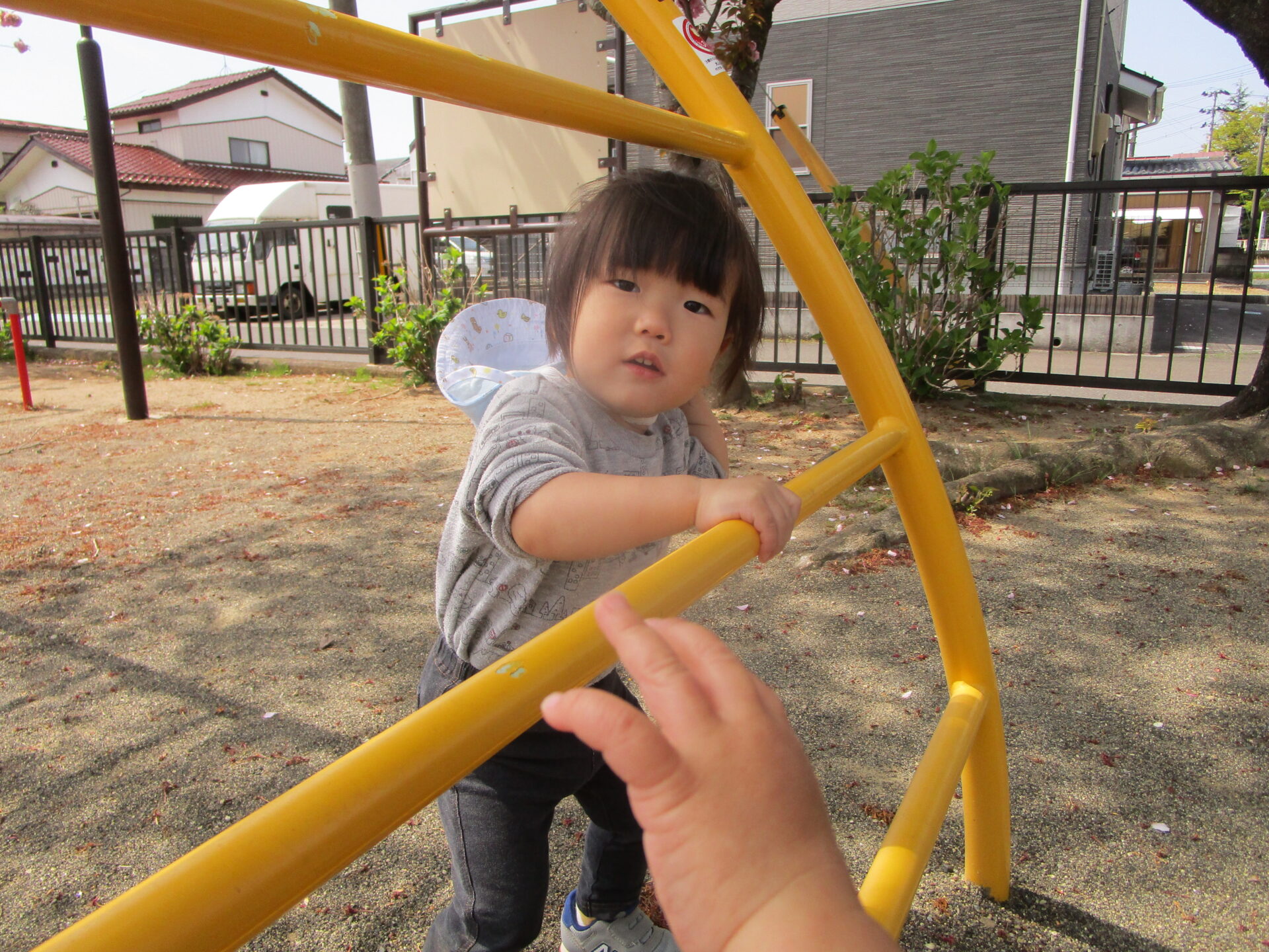 固定遊具の内側から「ばぁ~」と顔を出したり・・・